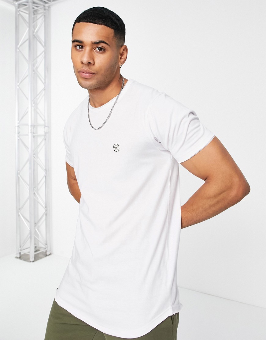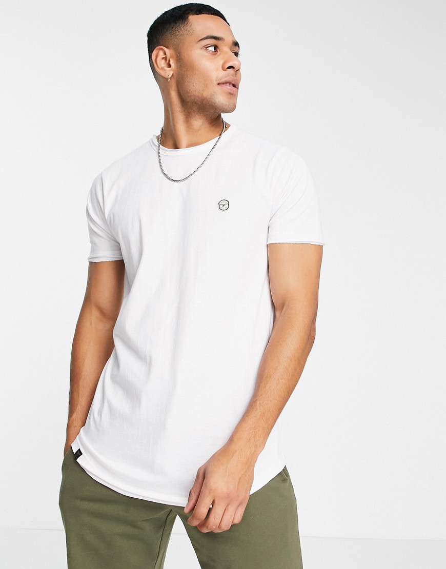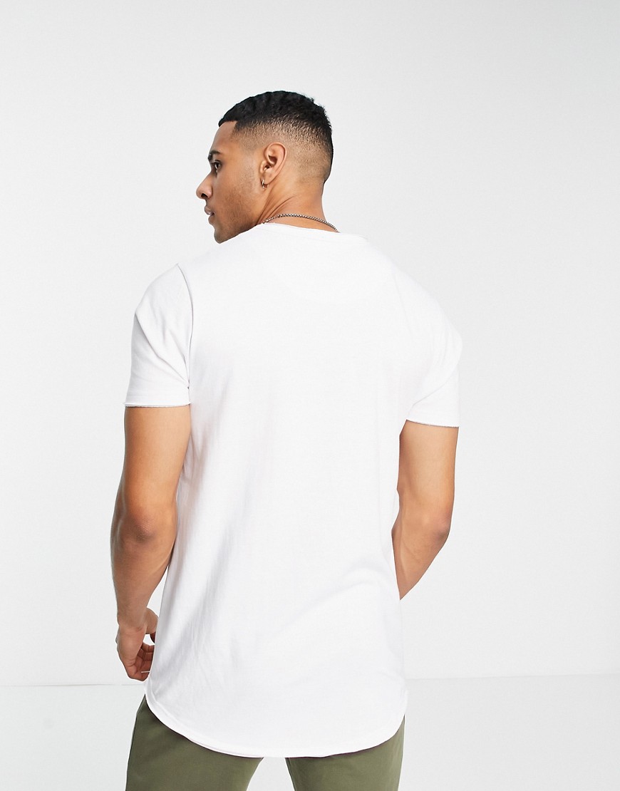 Le Breve biały T-shirt o wydłużonym fasonie z niewykończonym brzegiem używany XL