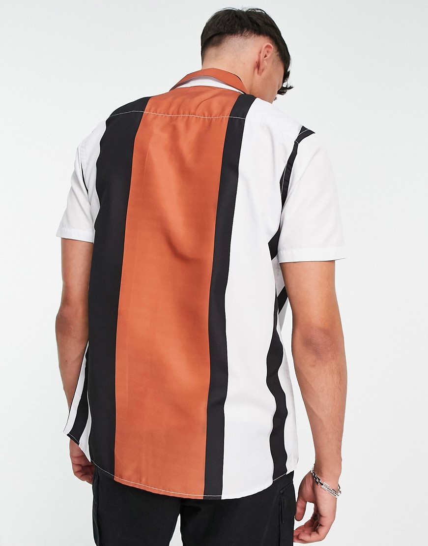 Le Breve koszula z kołnierzykiem kubańskim w paski defekt S