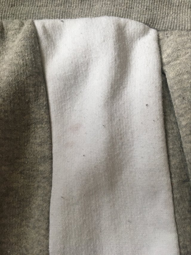 - Defekt: 2 plamki na prawym lampasie, kulkowanie materiału – spodnie noszą ślady użytkowania (zdjęcia w galerii przedmiotu).
