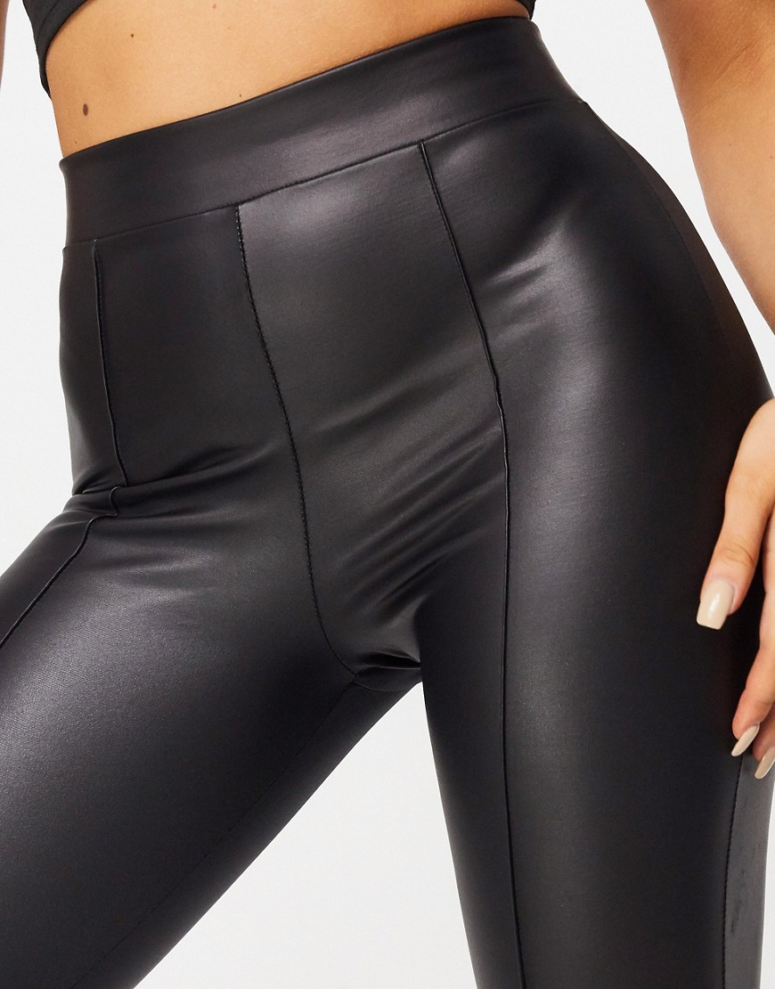 Legginsy damskie czarne sztuczna skóra 44