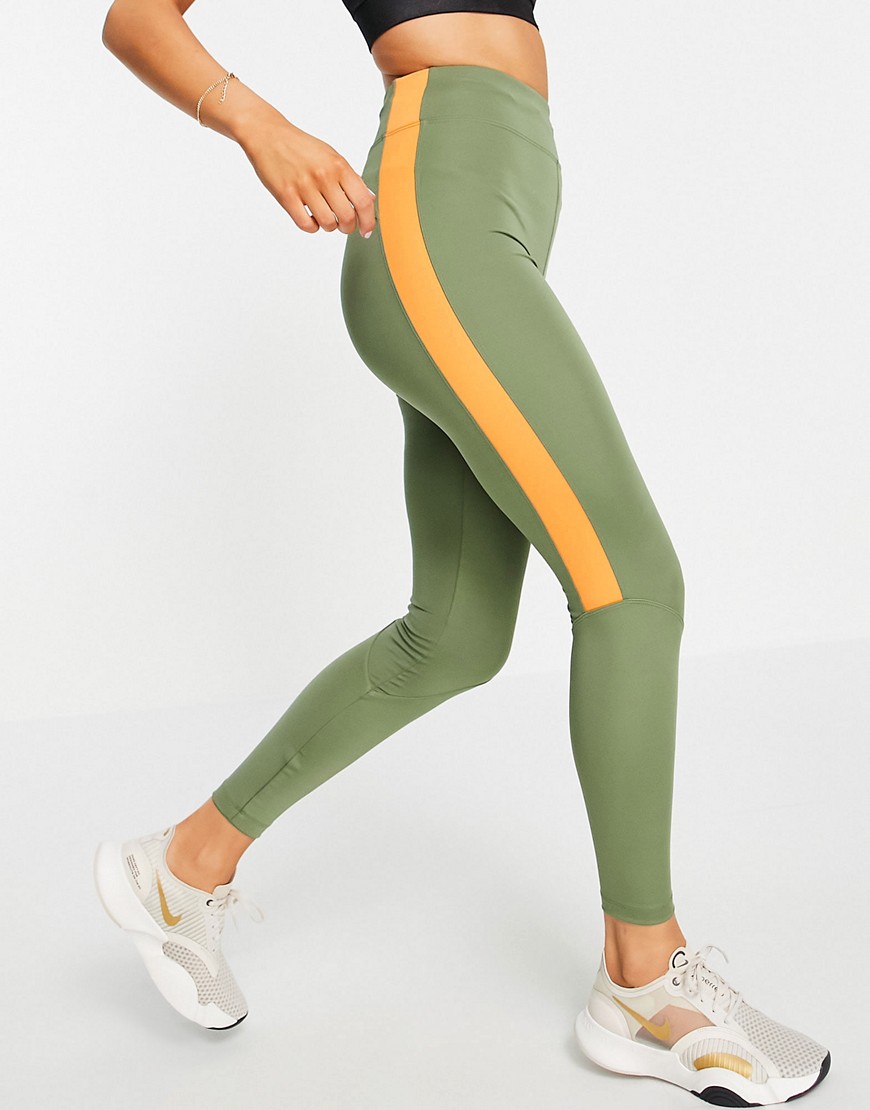 Legginsy do biegania w kolorze khaki z pomarańczową wstawką 36