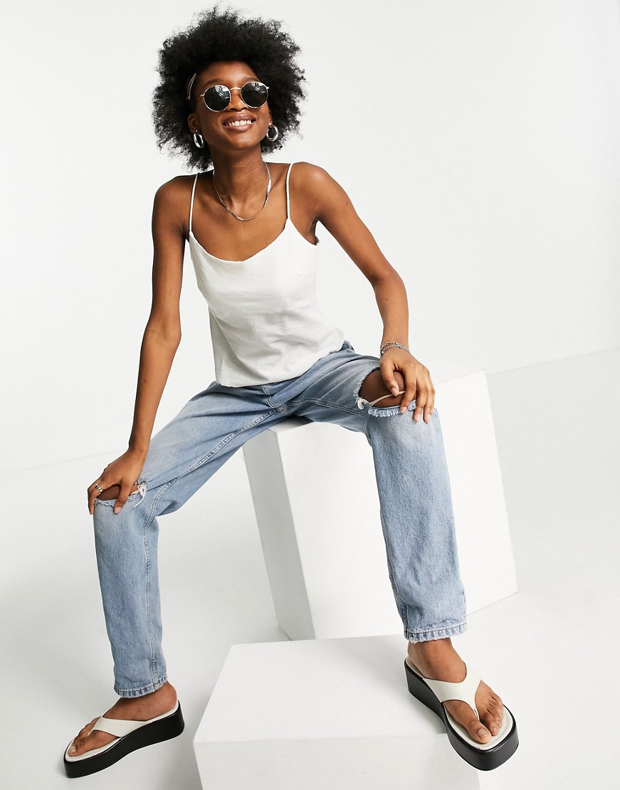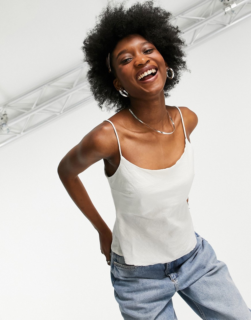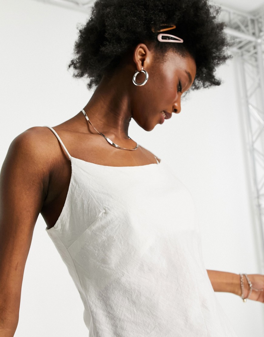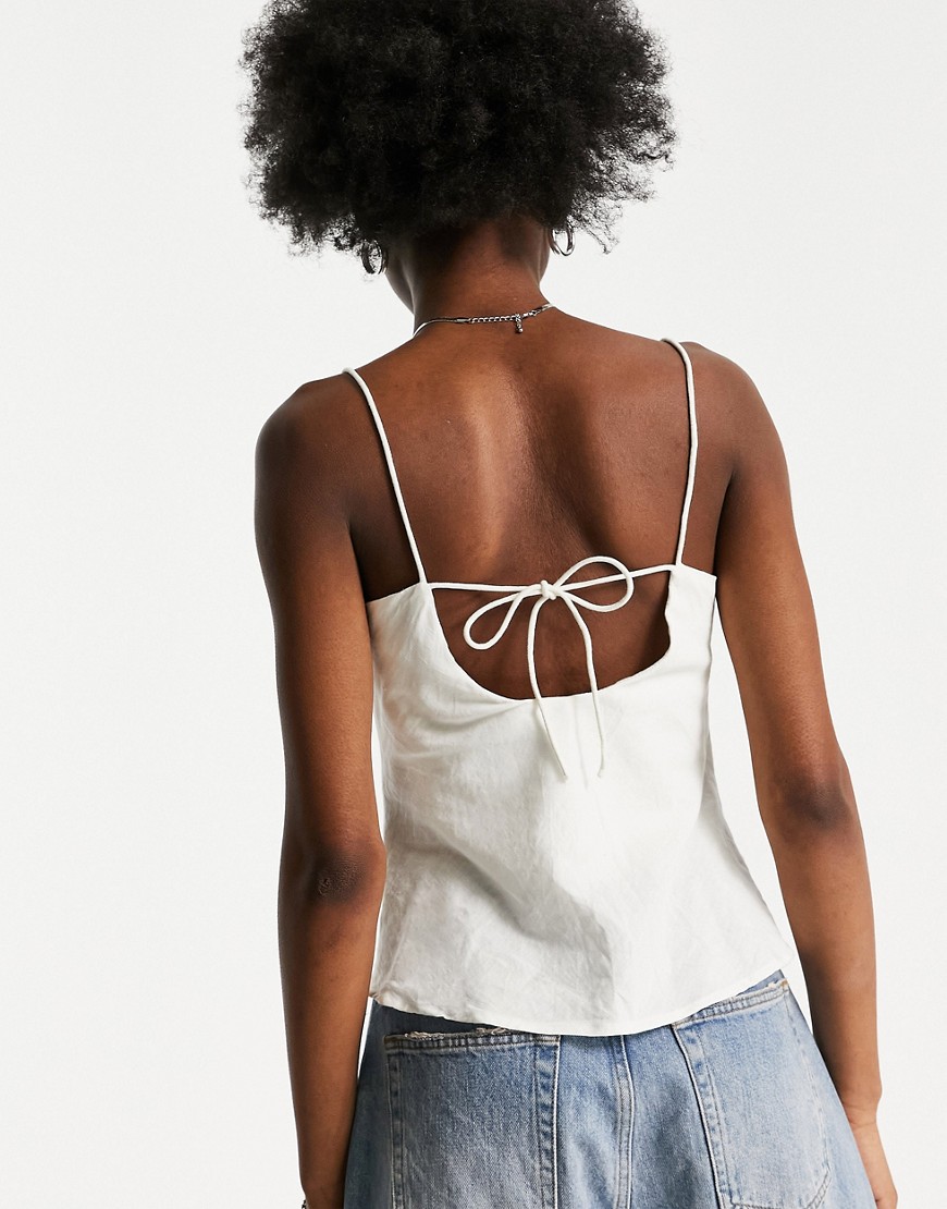 Letni lniany top na ramiączkach z wiązaniem na plecach ivory 36