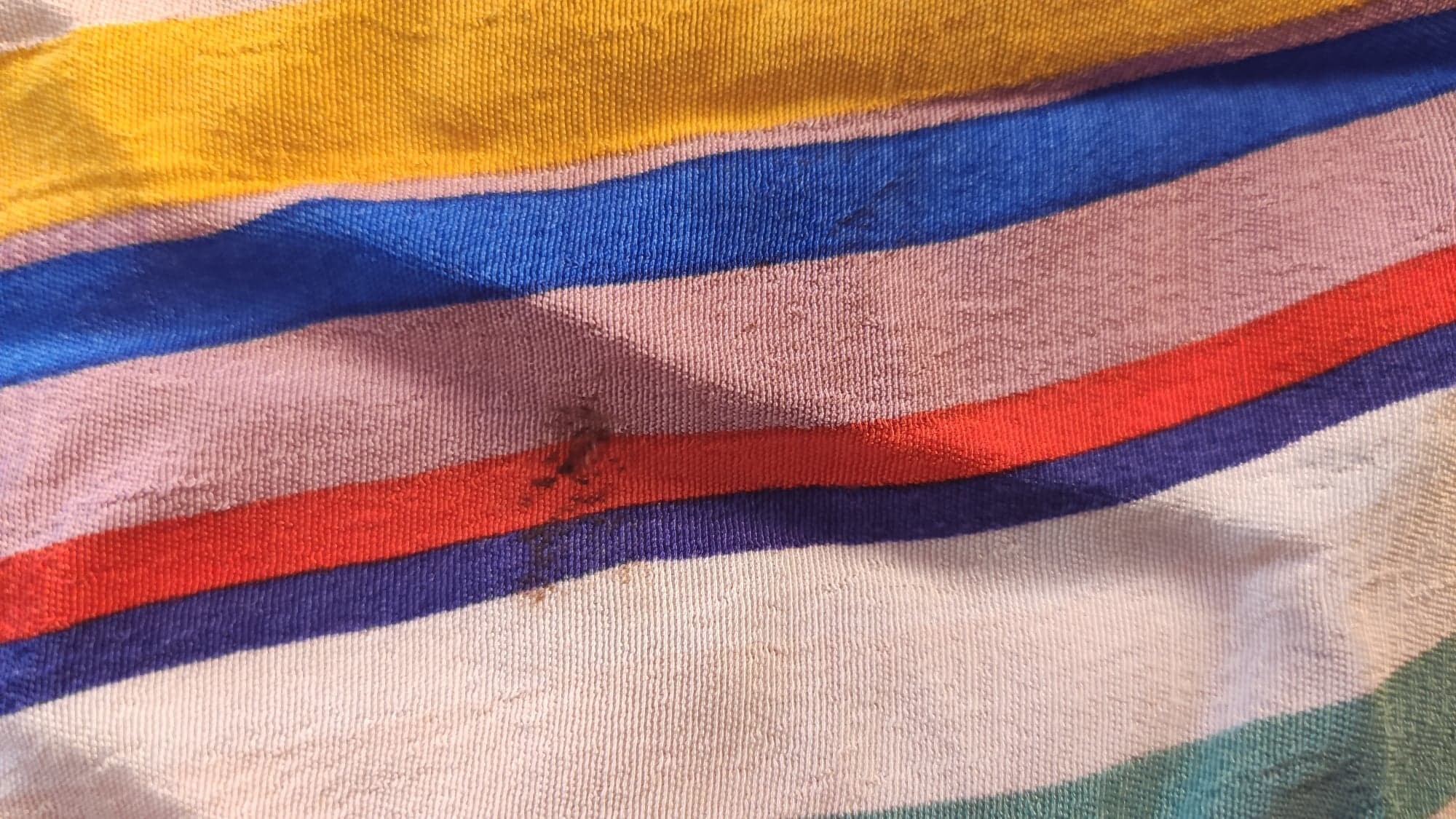 - DEFEKT: przytarcie materiału i niewielka dziurka z przodu. Z przodu u dołu po prawej stronie.
