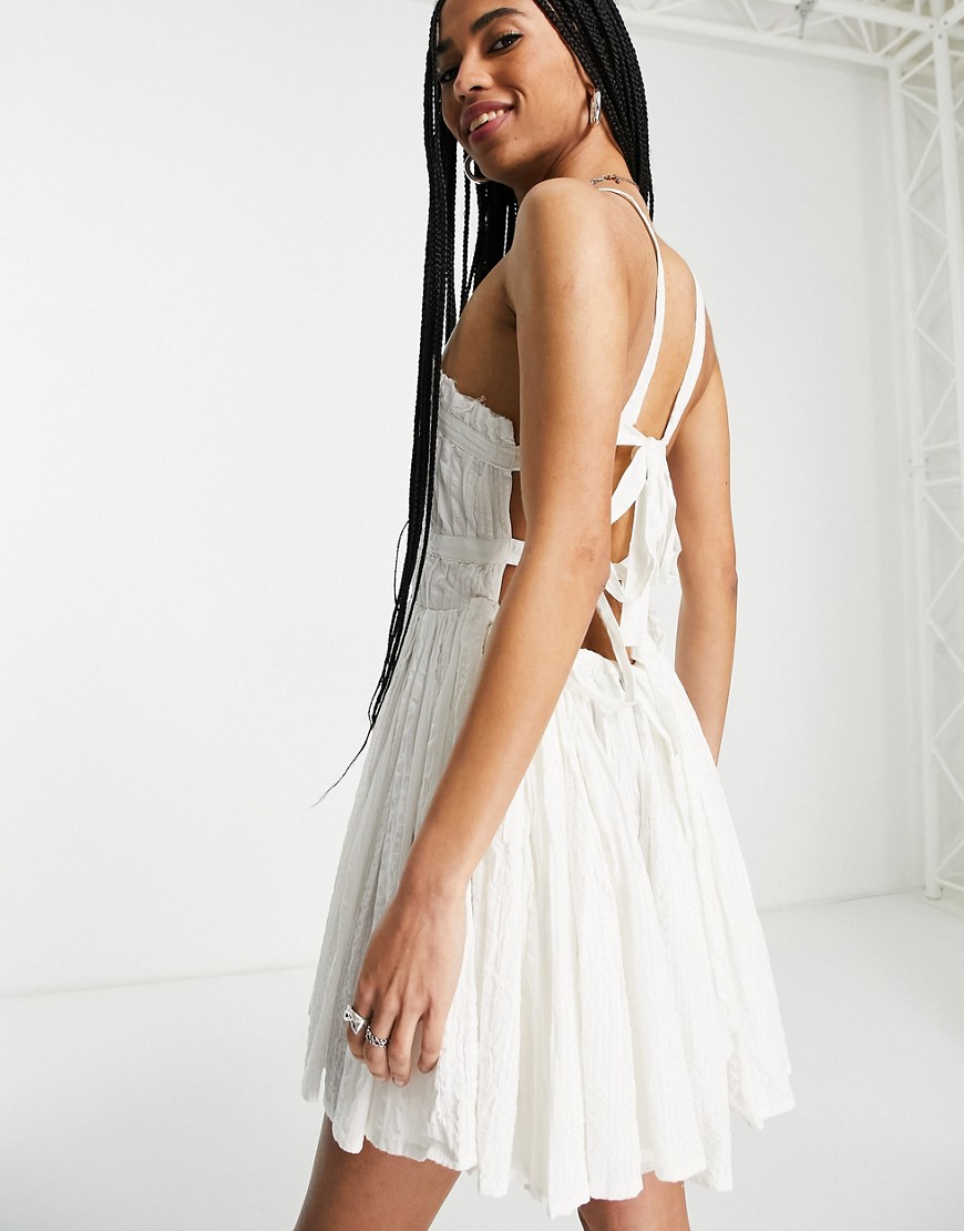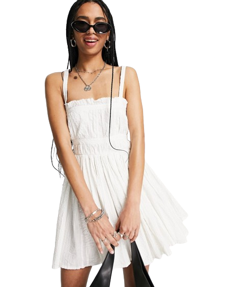 Letnia teksturowana sukienka mini z paseczkami w białym kolorze 34