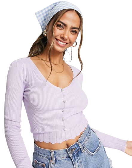 Liliowy prążkowany top z długimi rękawami i ozdobnymi perełkami 36