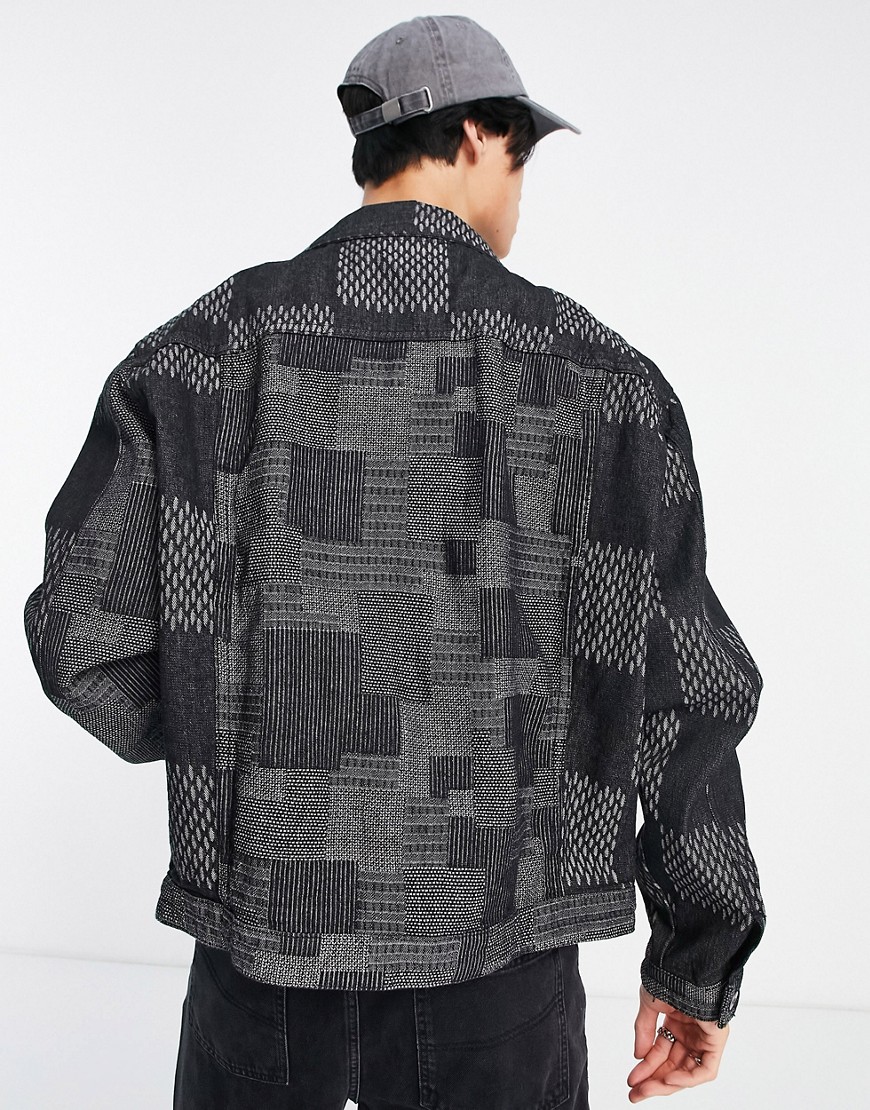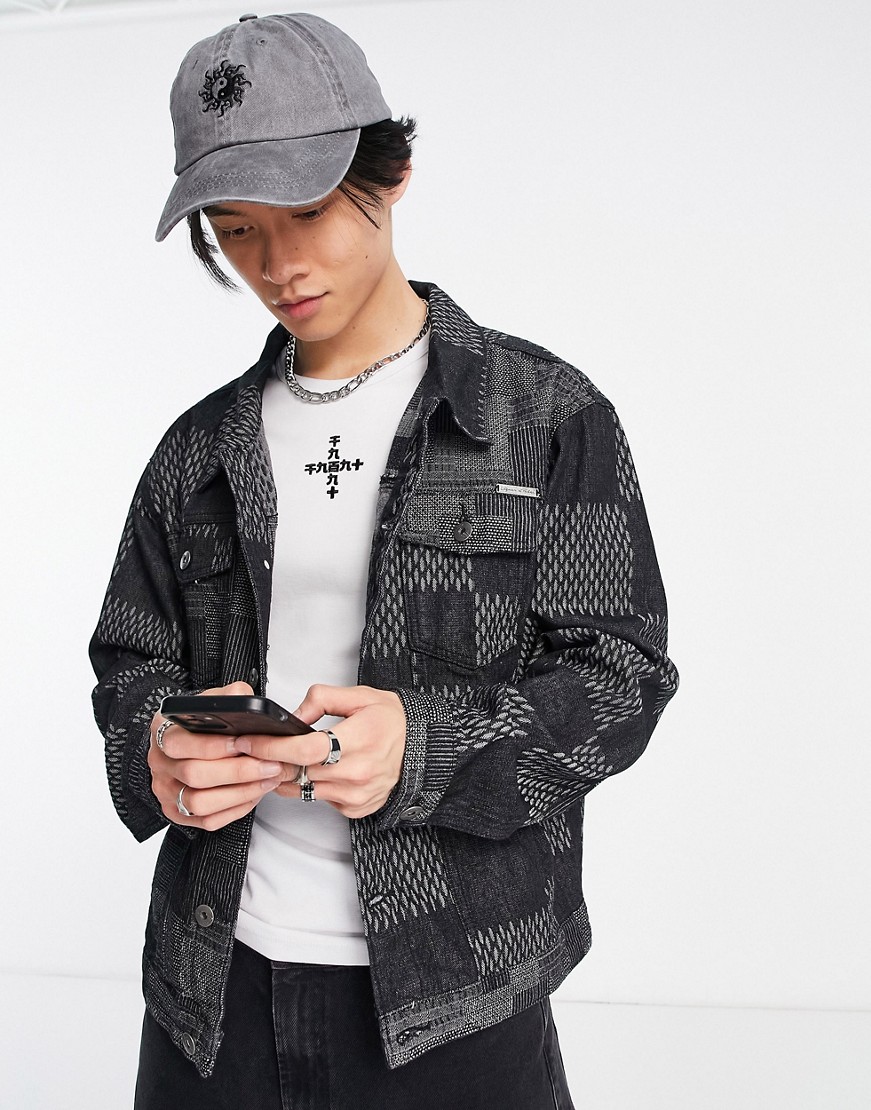 Liquor N Poker czarna kurtka jeansowa oversize w kratę L