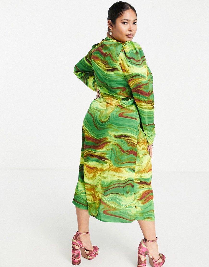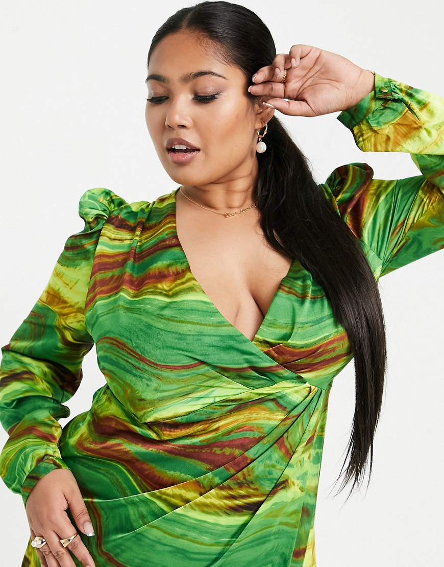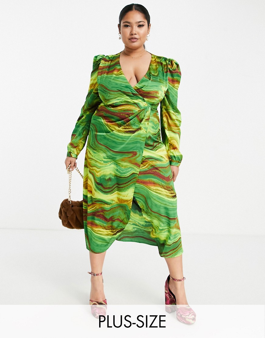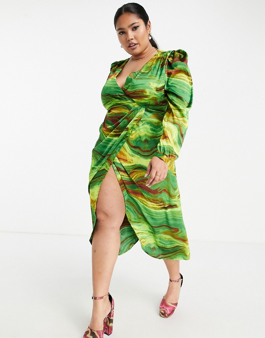 Liquorish zielona kopertowa sukienka midi w marmurkowy wzór 50