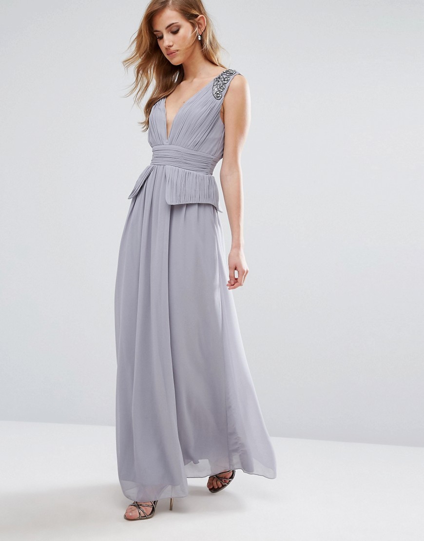 LITTLE MISTRESS – szara sukienka szyfonowa maxi