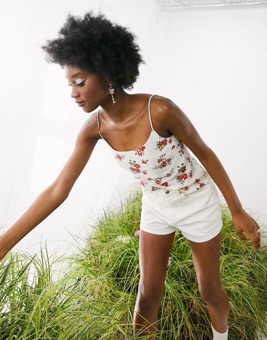 Lniana bluzka na ramiączkach w kwiaty ecru 44