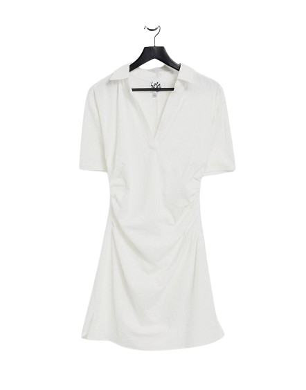 Lola May biała sukienka mini z dekoltem V i marszczoną talią na lato 38