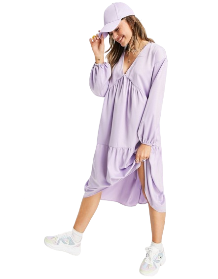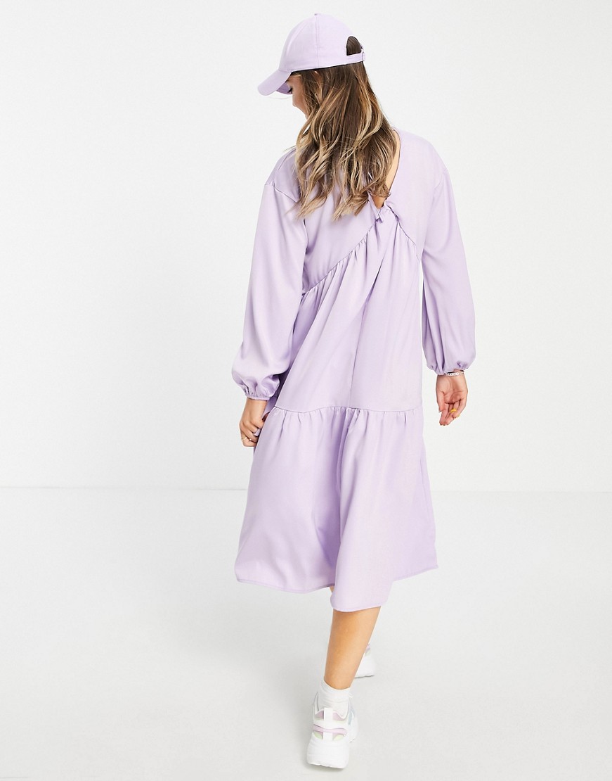 Lola May fioletowa sukienka midi z dekoltem w kształcie litery V 36