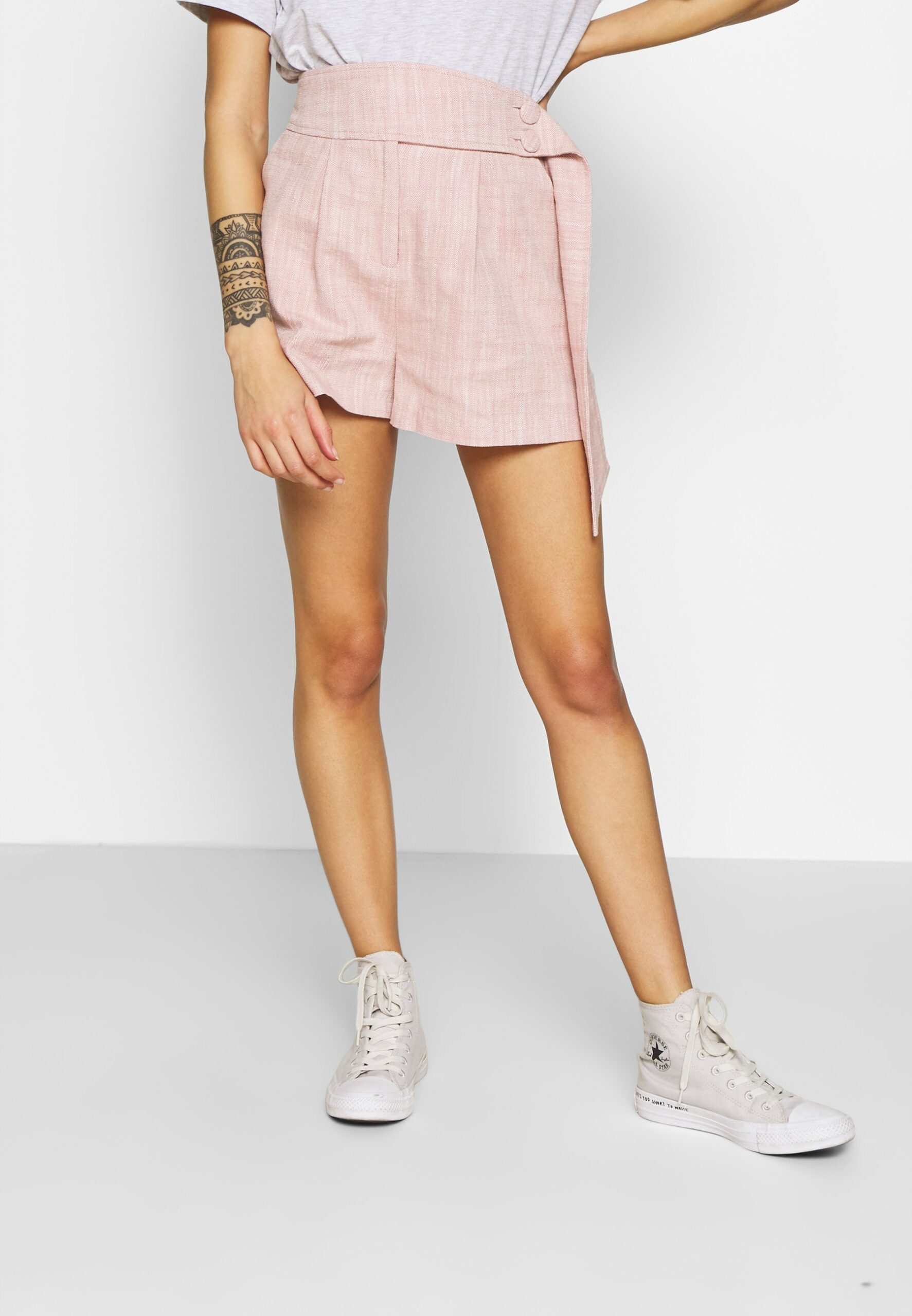 Lost Ink damskie spodenki w kolorze różowym z kieszeniami i ozdobnym paskiem 36