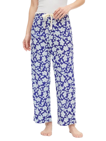 Love damskie granatowe materiałowe spodnie w kwiaty proste szerokie nogawki wiązane w pasie XS