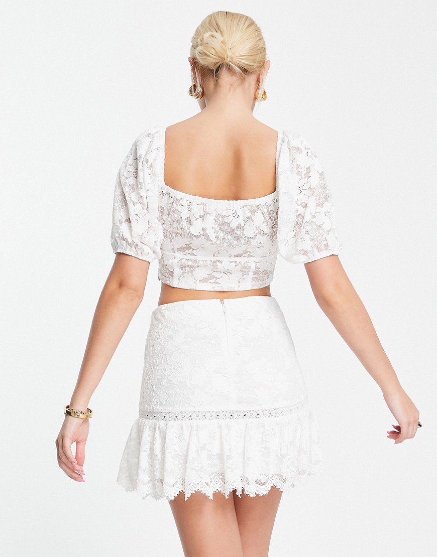 Love Triangle biały koronkowy top z bufiastymi rękawami 38