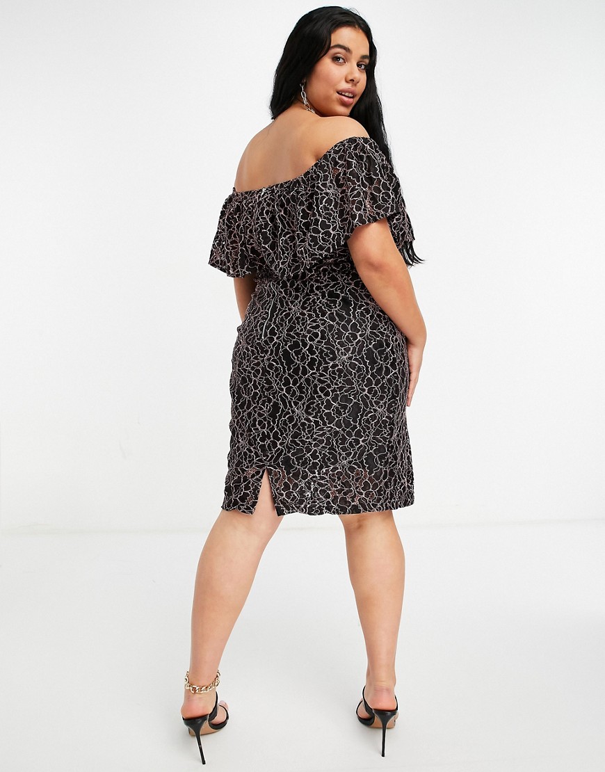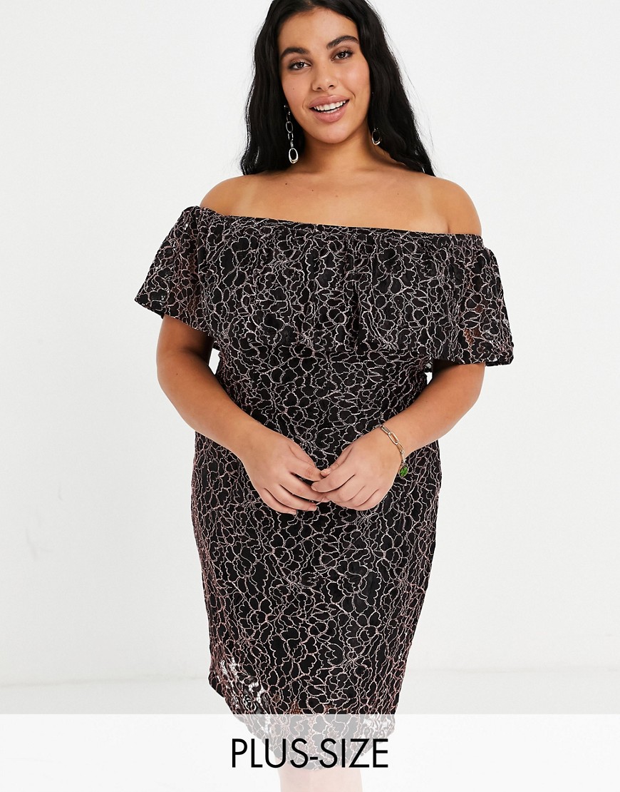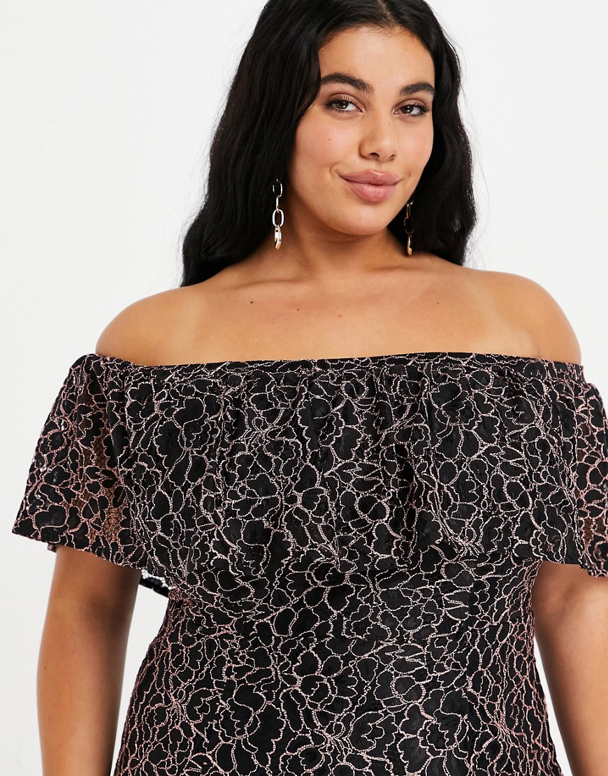 Lovedrobe czarna sukienka koronkowa z dekoltem bardot 50
