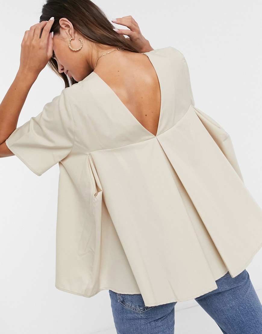 Luźna bluzka damska z dkoltem V na plecach beżowa 36