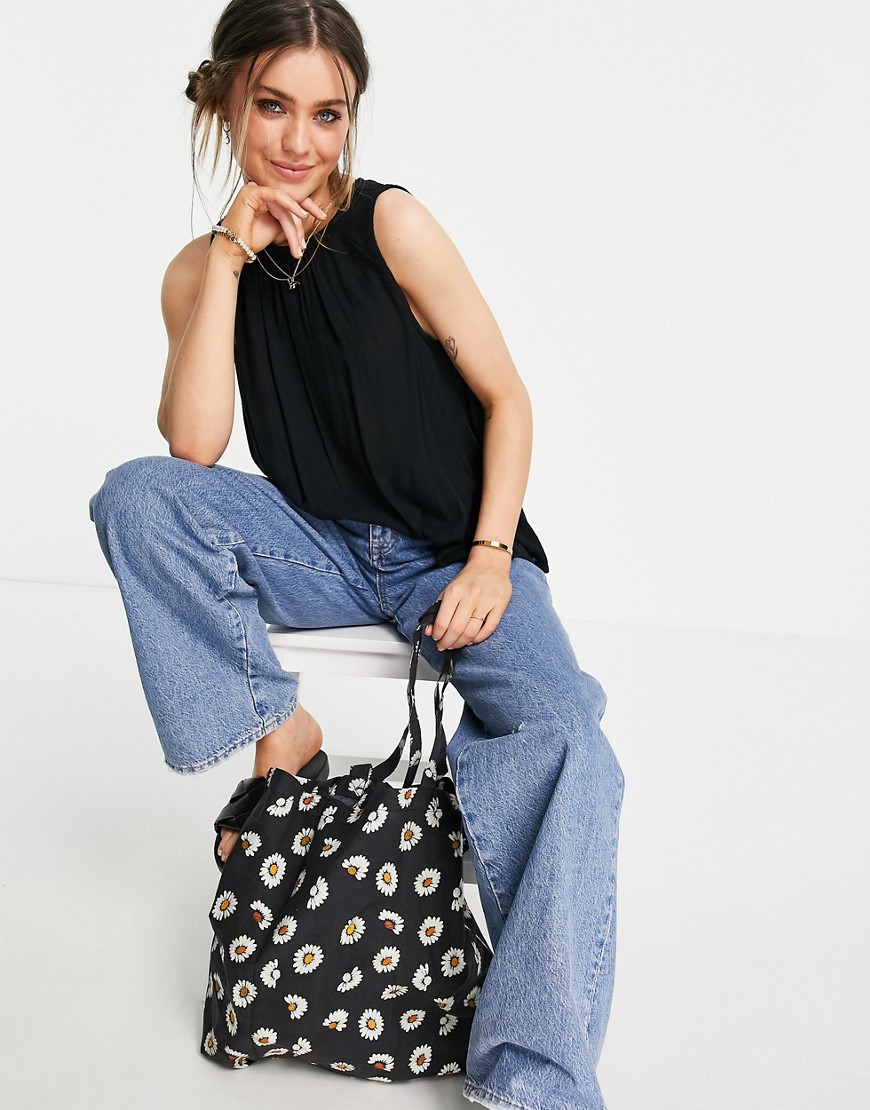 Luźna krepowana bluzka w kolorze czarnym zapinana na guziki 36