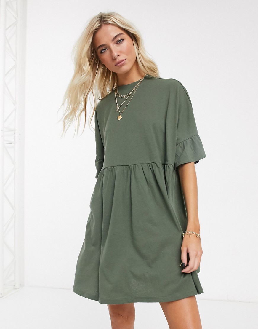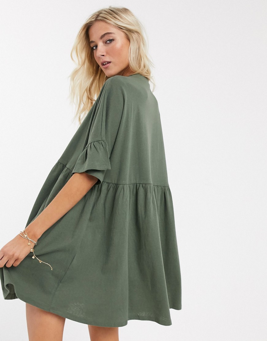 Luźna sukienka khaki oversize z falbankami na rękawach 32