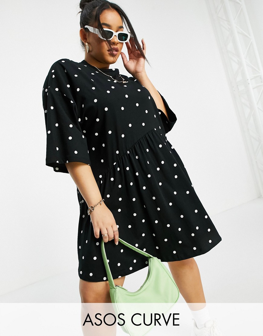 Luźna sukienka mini oversize z obniżoną talią w kropki czarna 44