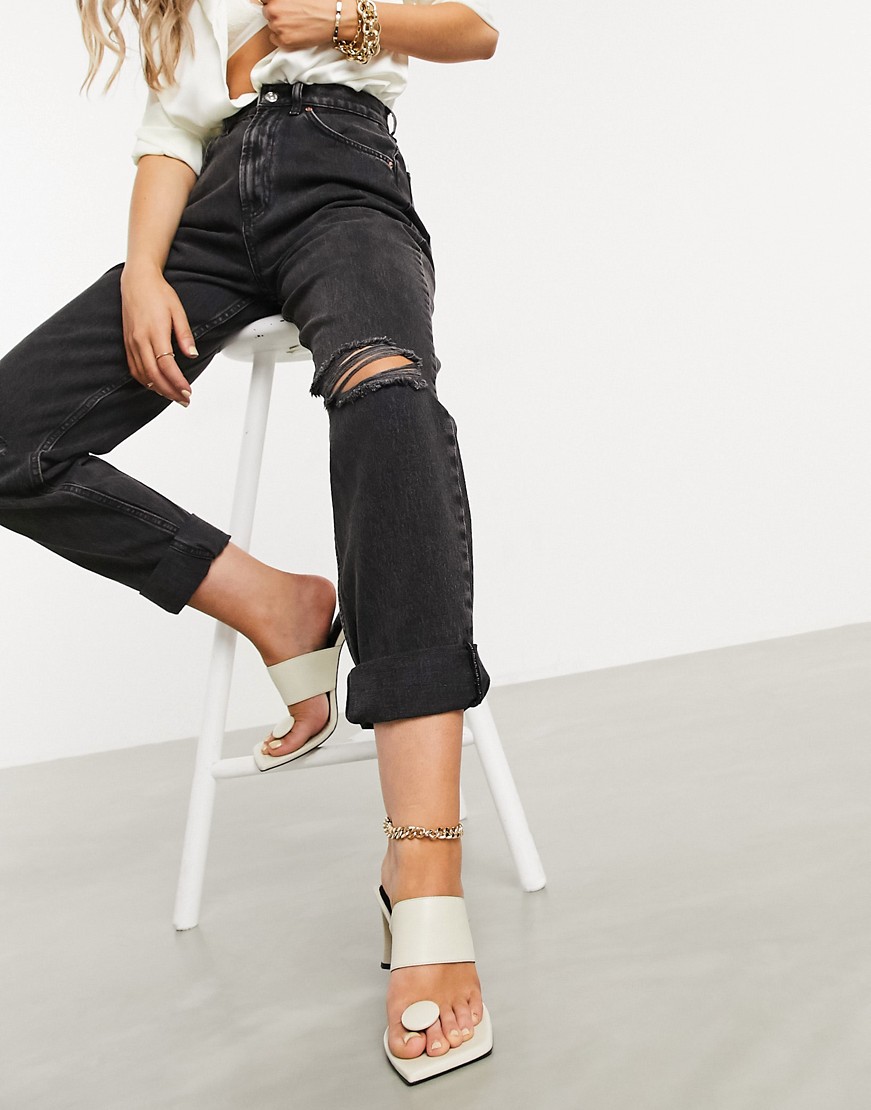 Luźne jeansy typu mom z przetarciami w kolorze spranej czerni W28 L30