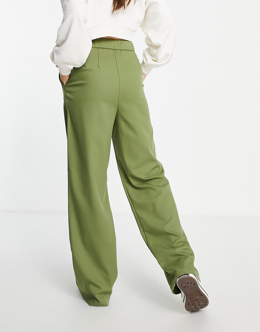 Luźne spodnie typu dad z szerokimi nogawkami khaki defekt 36
