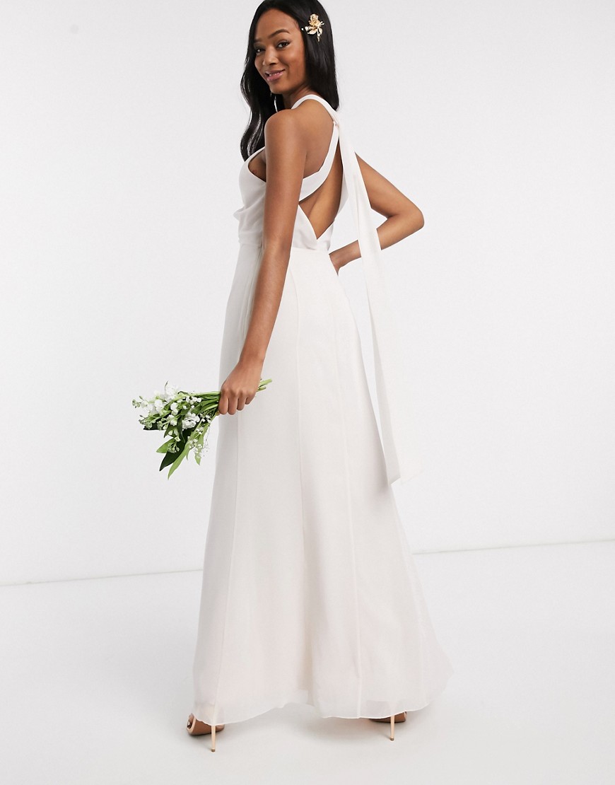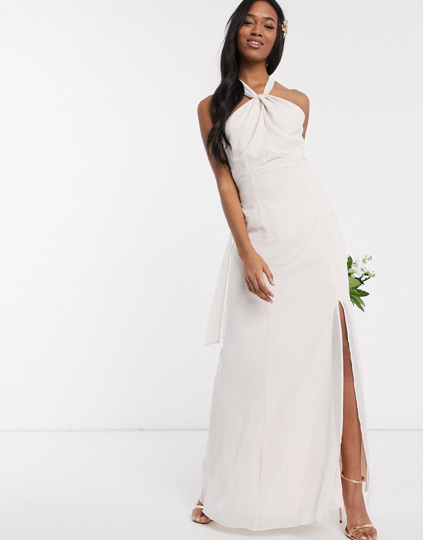Maids to Measure koktajlowa sukienka maxi z szyfonu z dekoltem typu halterkremowa 44