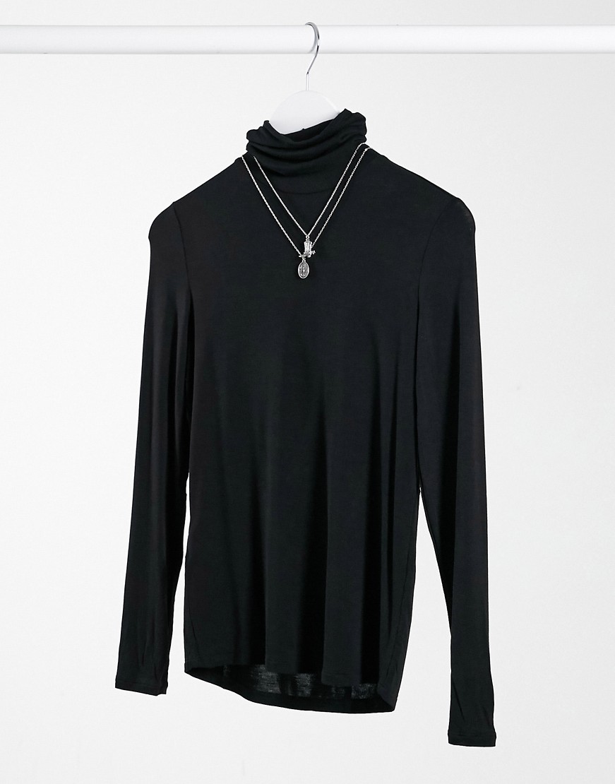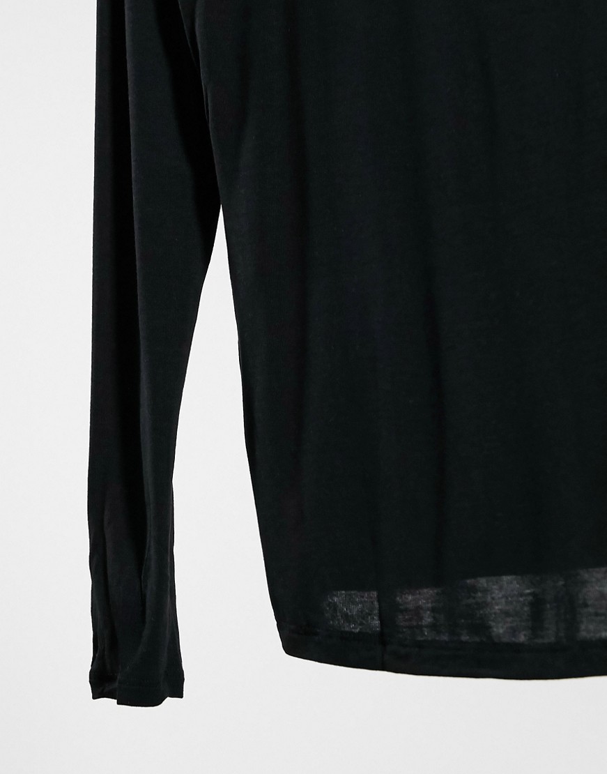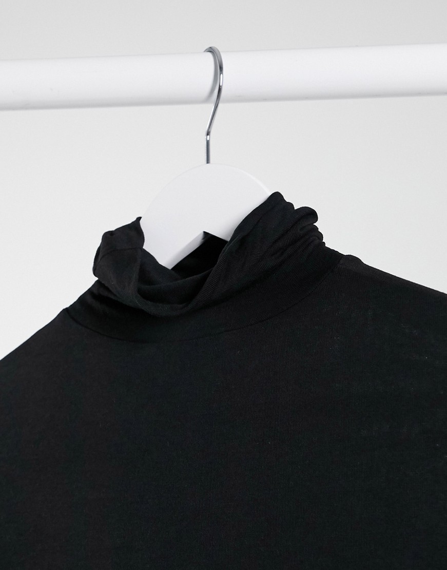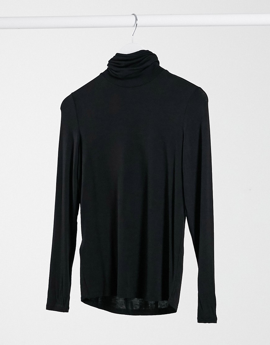 Mango – Czarny T-shirt z długim rękawem i odwijanym golfem M