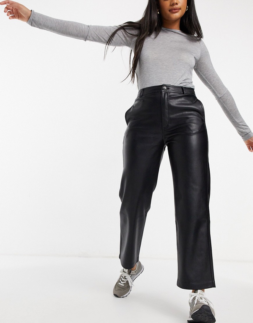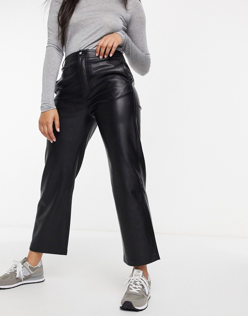 Mango damskie czarne spodnie ze sztucznej skóry 42