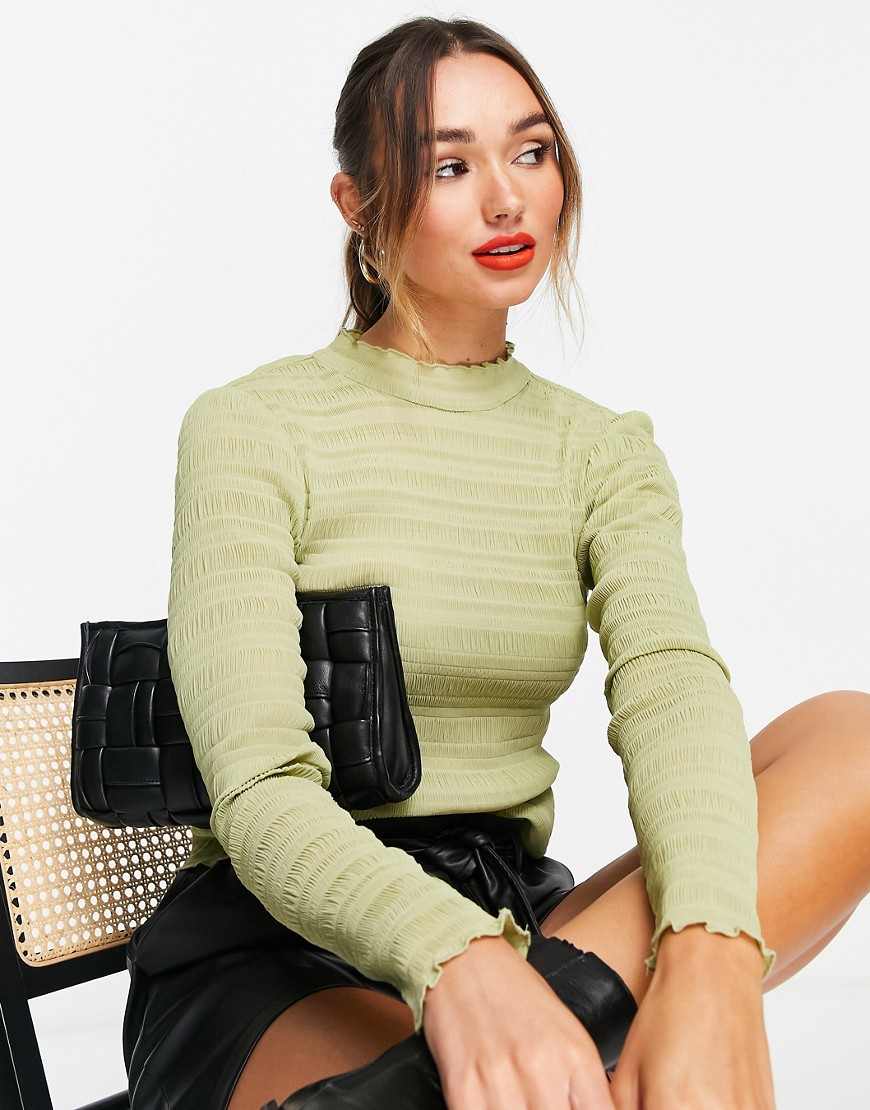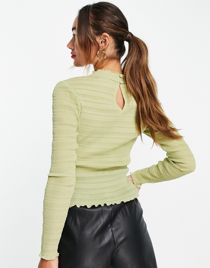 Marszczona bluzka z półgolfem i długimi rękawami zielona 36