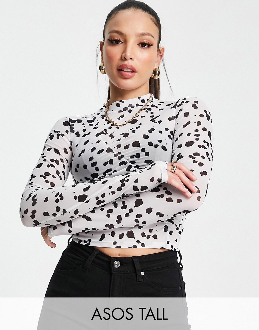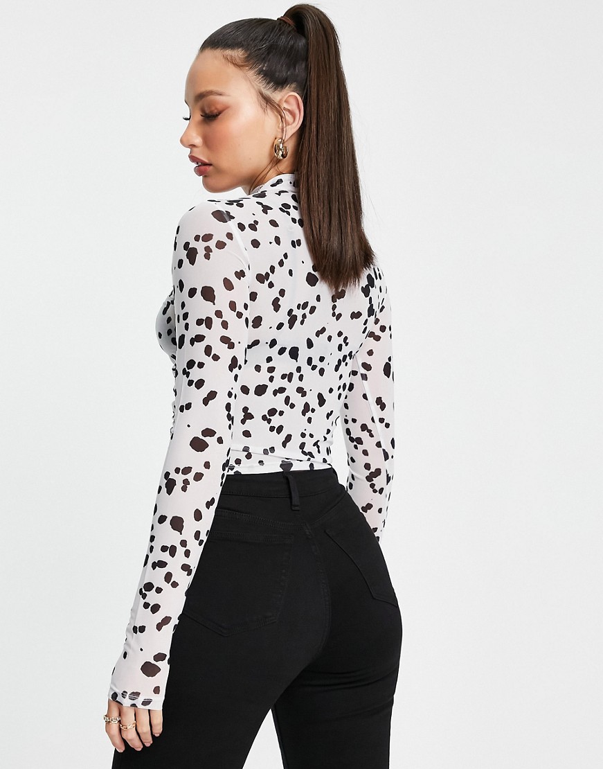 Marszczony biały top z siateczki w łaty dalmatyńczyka 38
