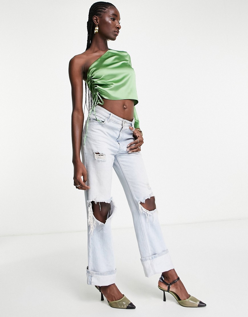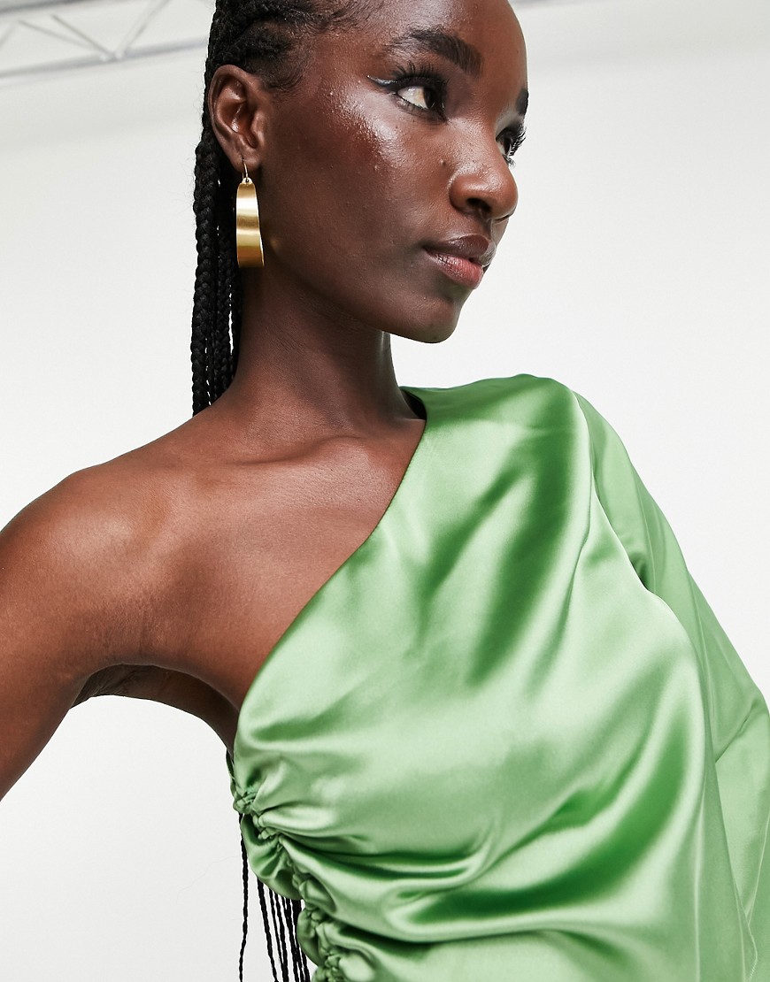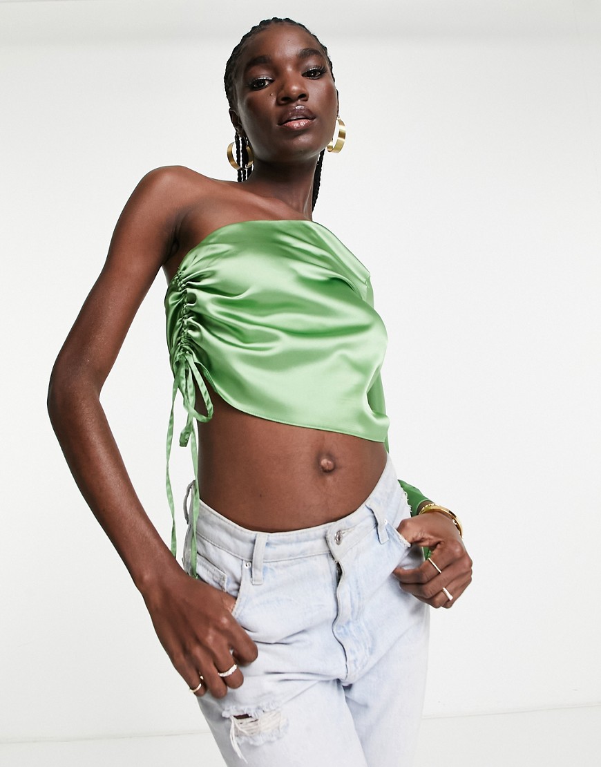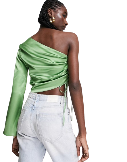Marszczony z boku zielony top z satyny 36