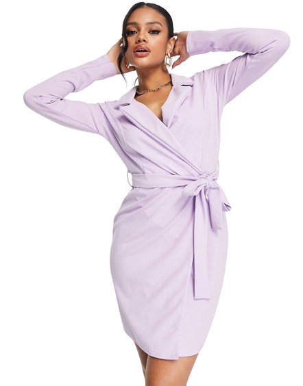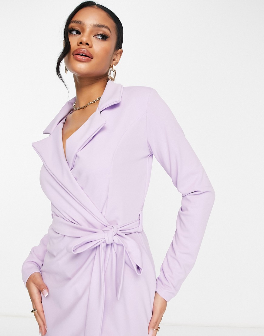 Marynarkowa kopertowa sukienka mini fioletowa defekt 42