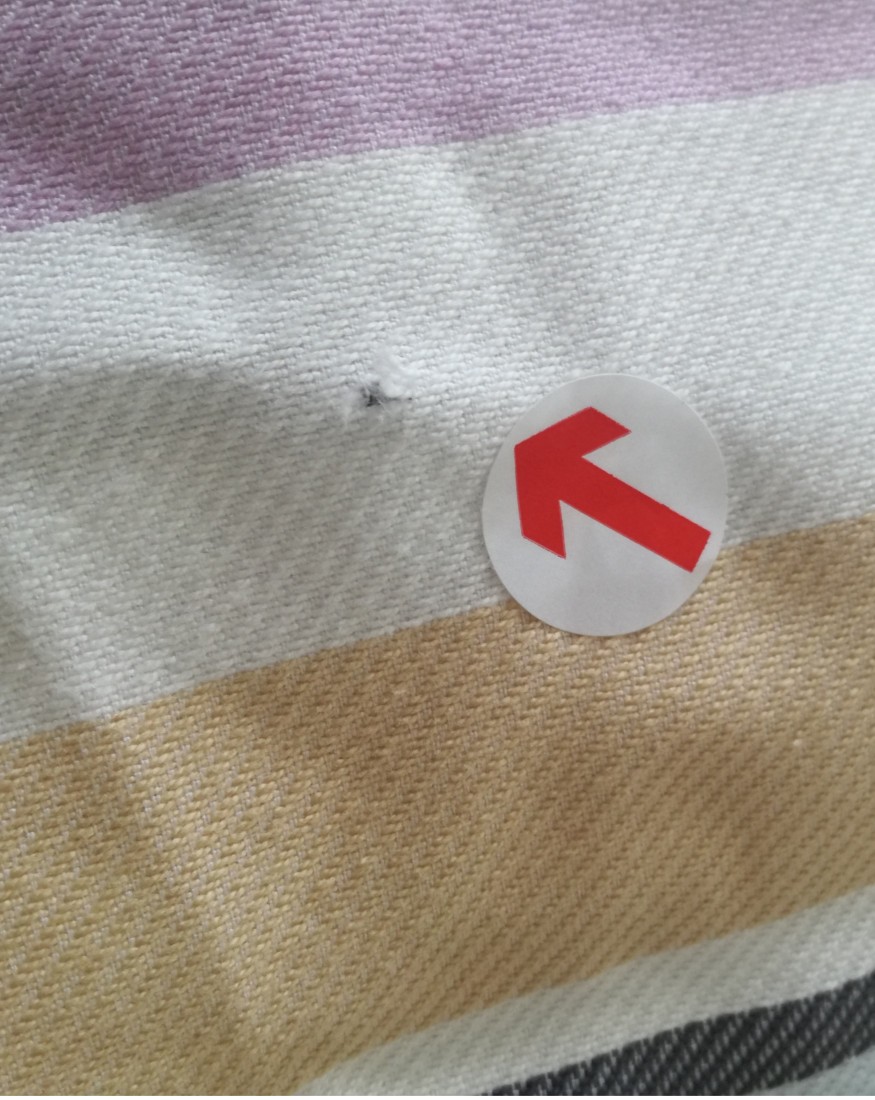 - Defekt: maleńka dziurka z tyłu na wysokości kolana (zdjęcie)