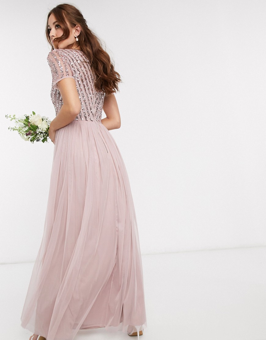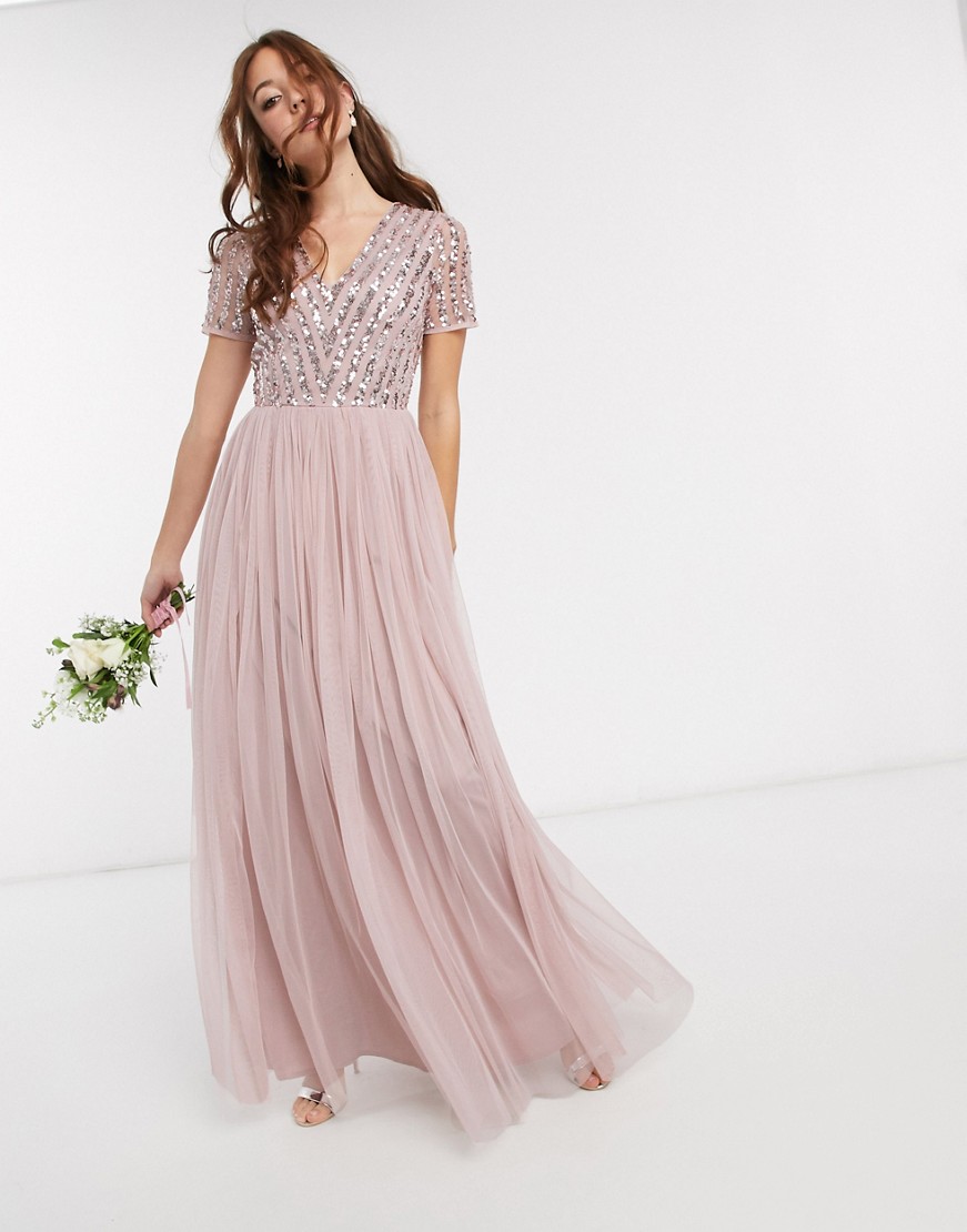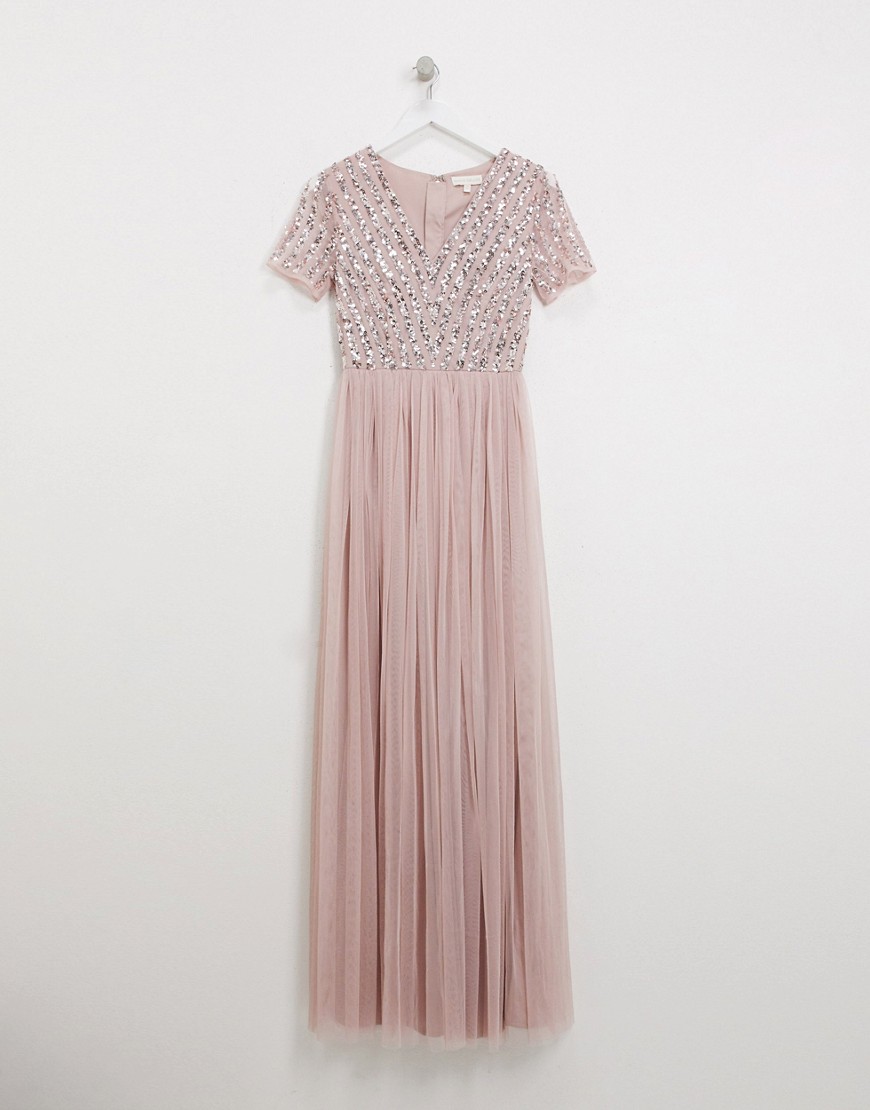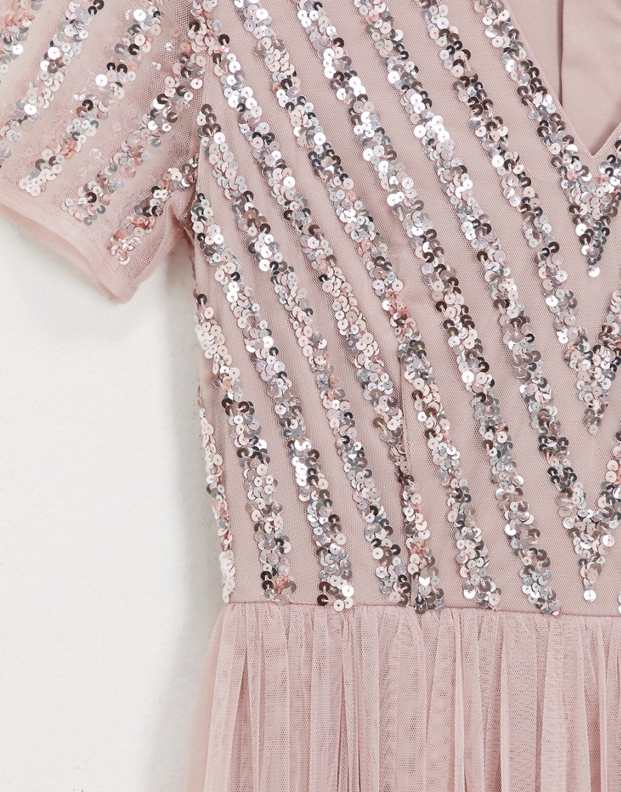 Maya różowa cekinowa sukienka maxi z dekoltem w kształcie V 38