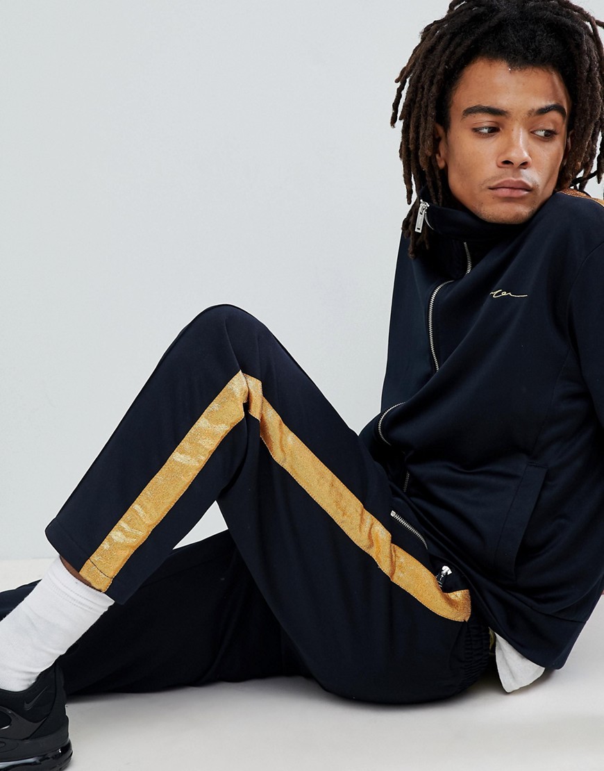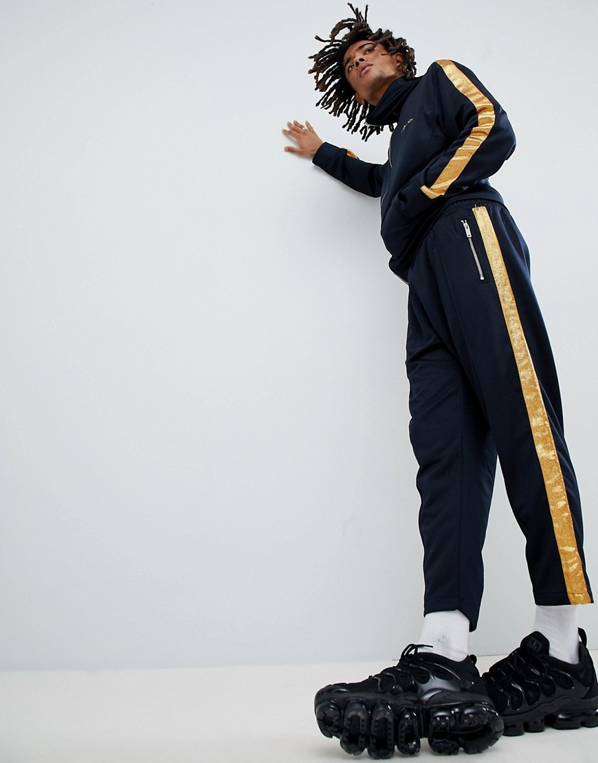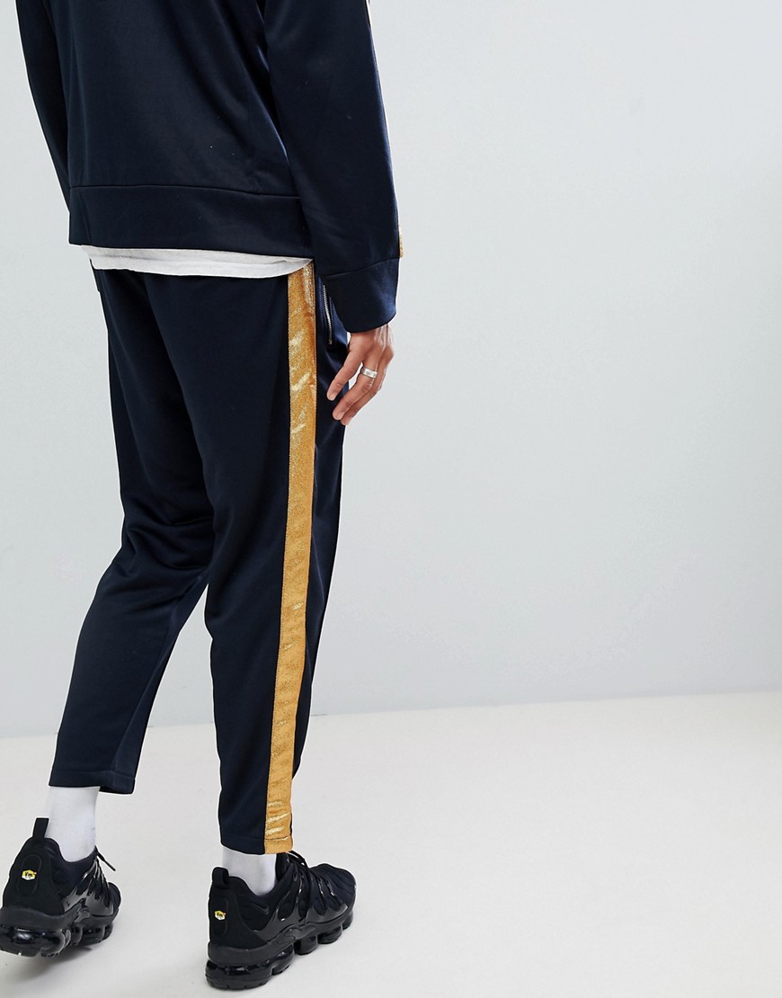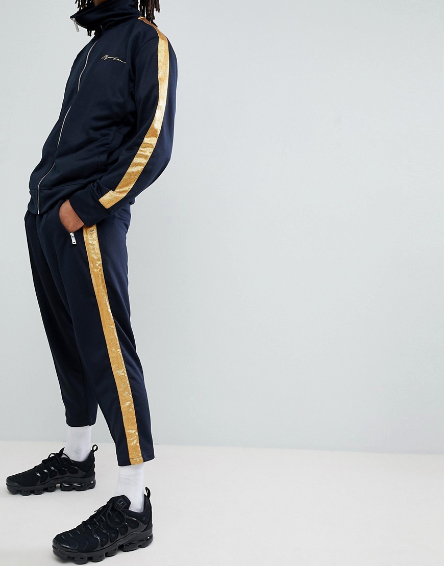 Mennace Granatowe dopasowane Spodnie joggery lampas XL