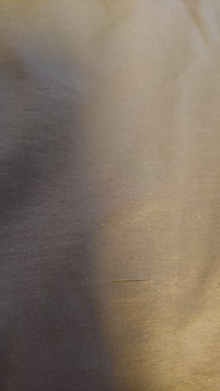 - DEFEKT: z przodu z przwej strony na dole i u góry przcięty materiał