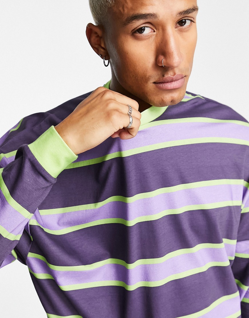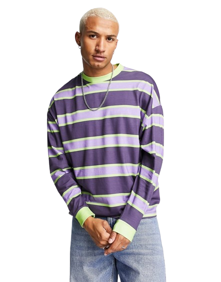 Męski fioletowo zielony t-shirt oversize z długim rękawem defekt M