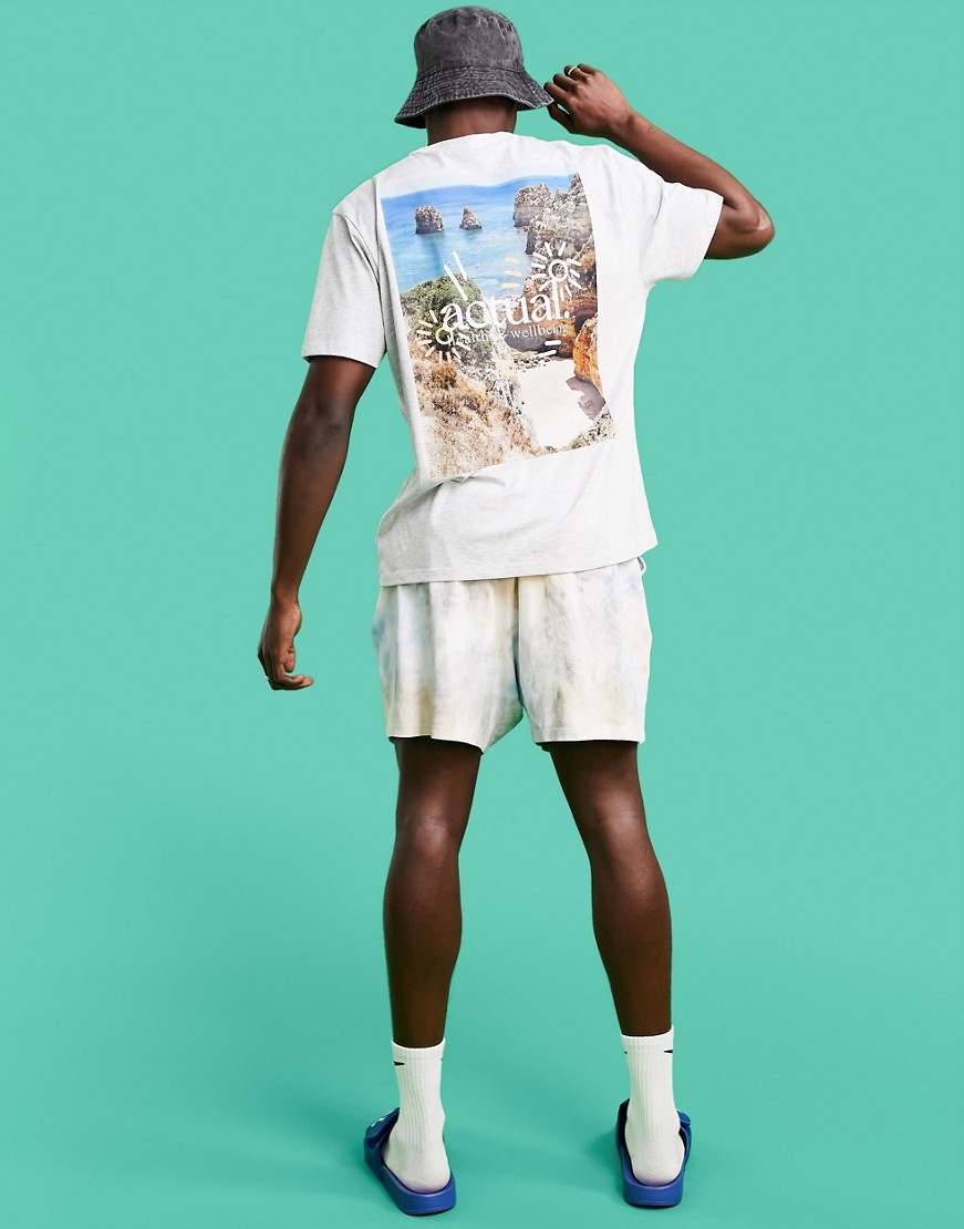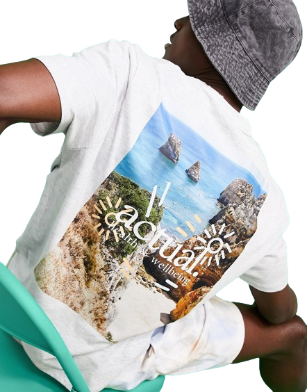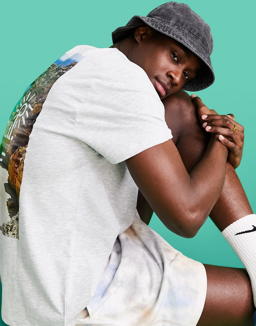 Męski szary luźny t shirt z graficznym nadrukiem na plecach XS