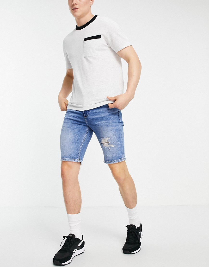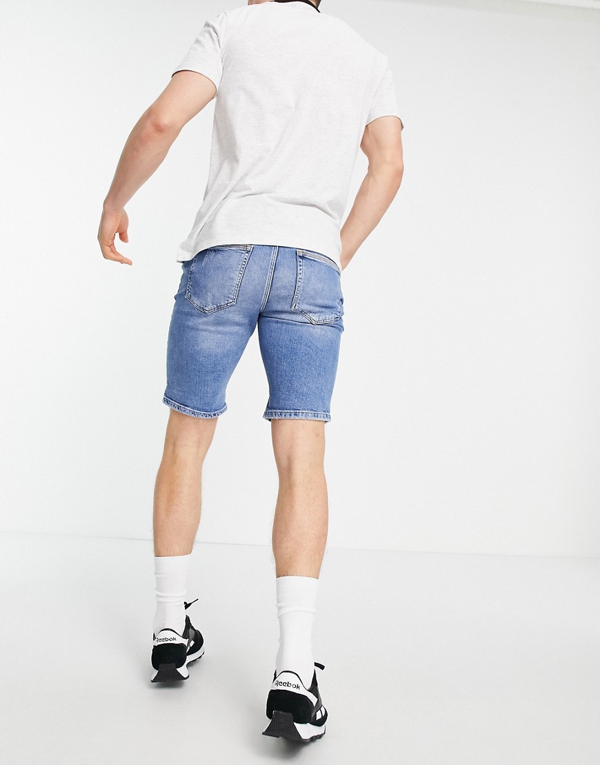 Męskie niebieskie krótkie spodenki jeansowe W32
