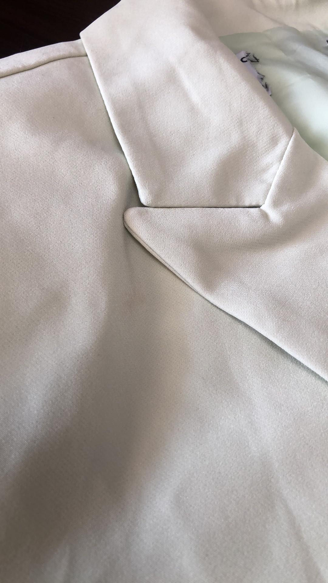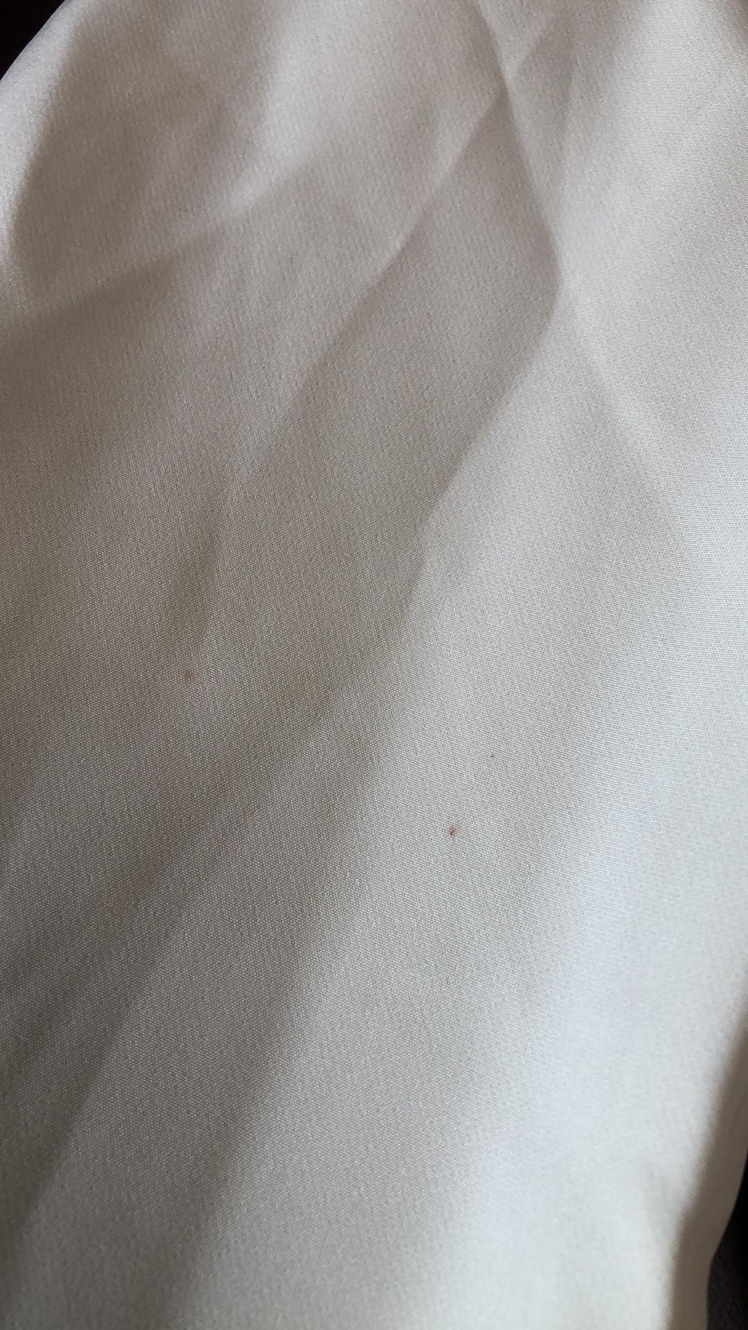 - Defekt małe plamy na rękawach z przodu oraz koło kołnierza, zdjęcie w galerii produktu