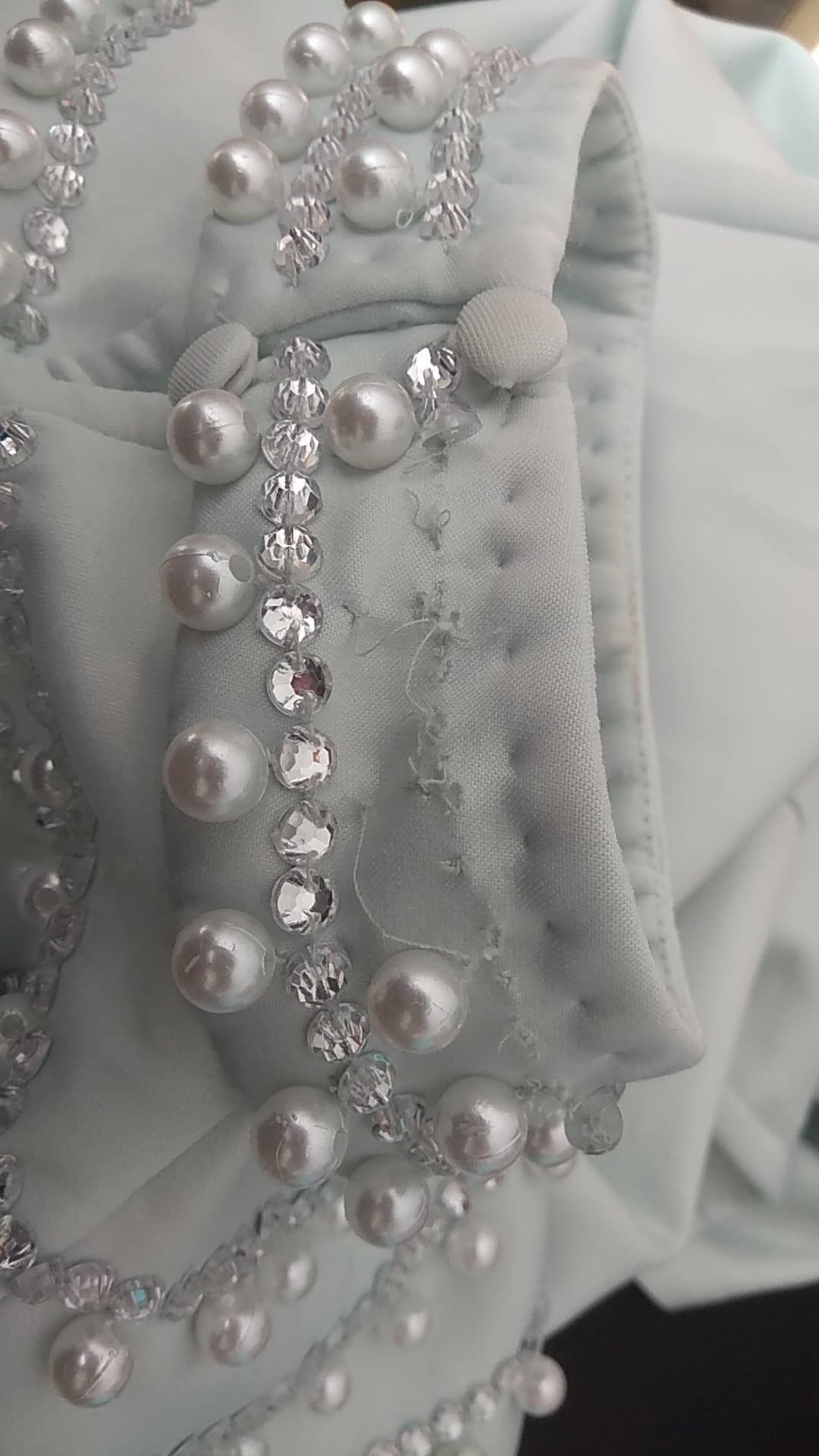 - Defekt: brak perełek przy szyi z tyłu (ZDJĘCIE)