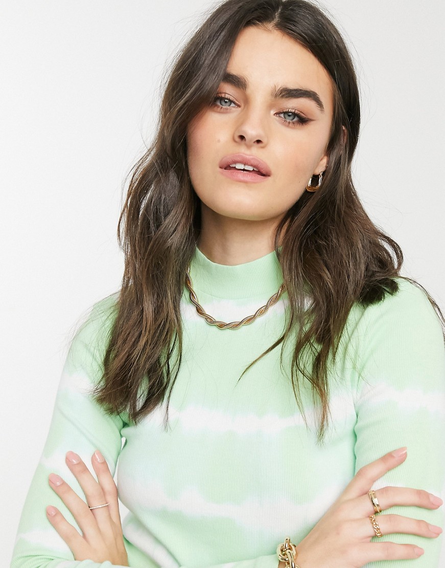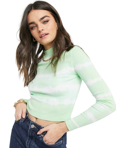 Miętowy dopasowany prążkowany półgolf z efektem tie-dye 36
