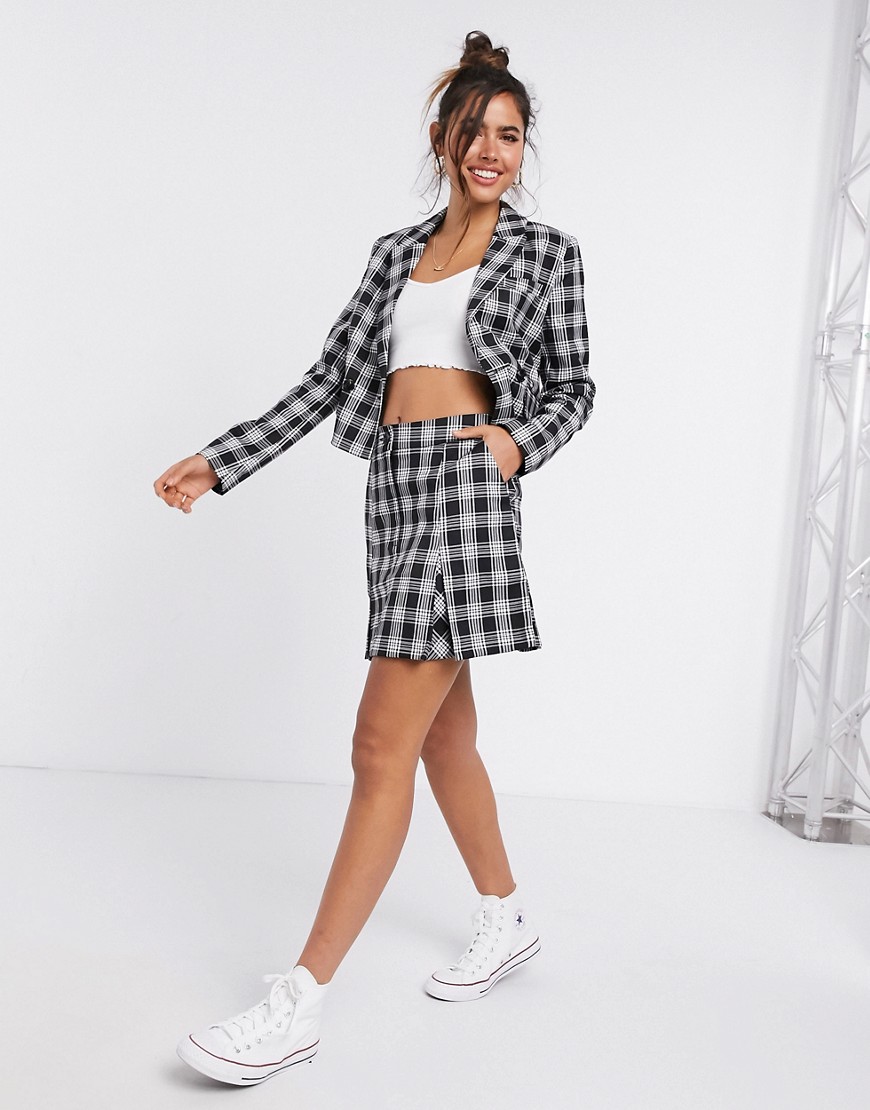 Teksturowane wykończenieMateriał główny: 98% poliester, 2% elastan. Podszewka: 100% poliester.