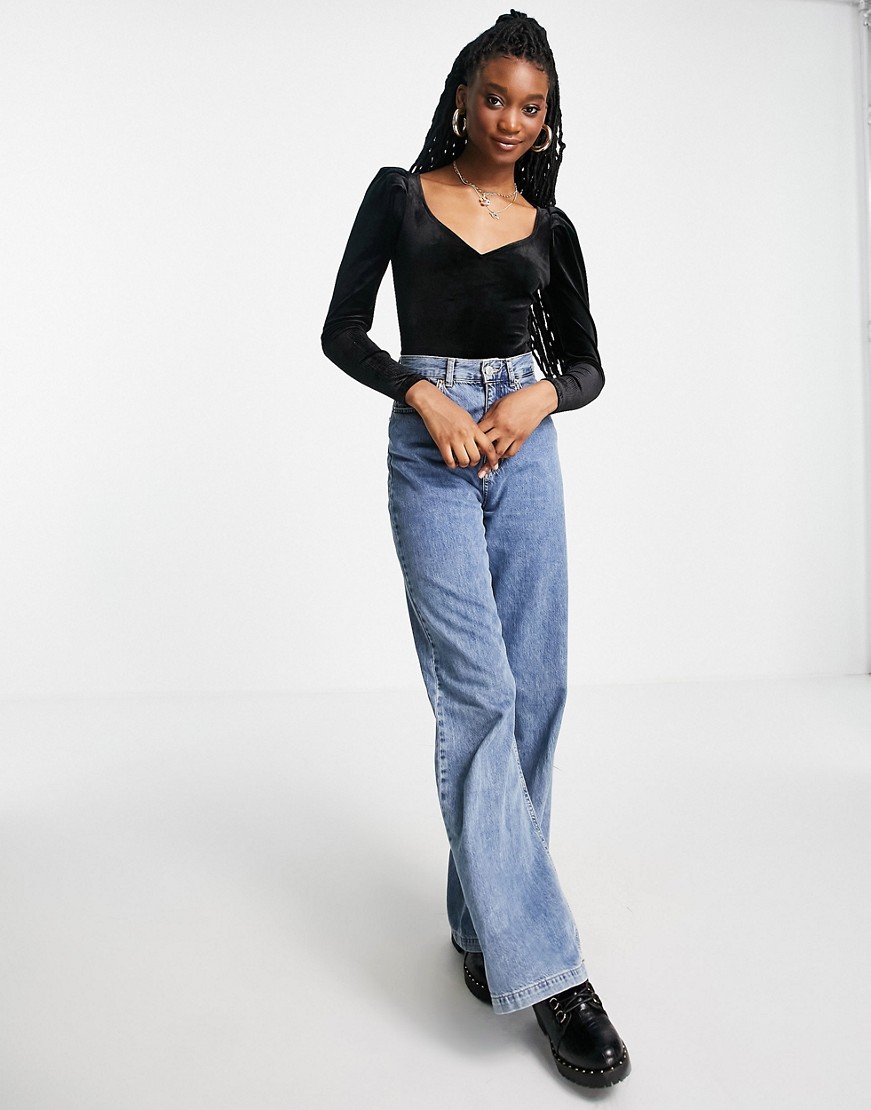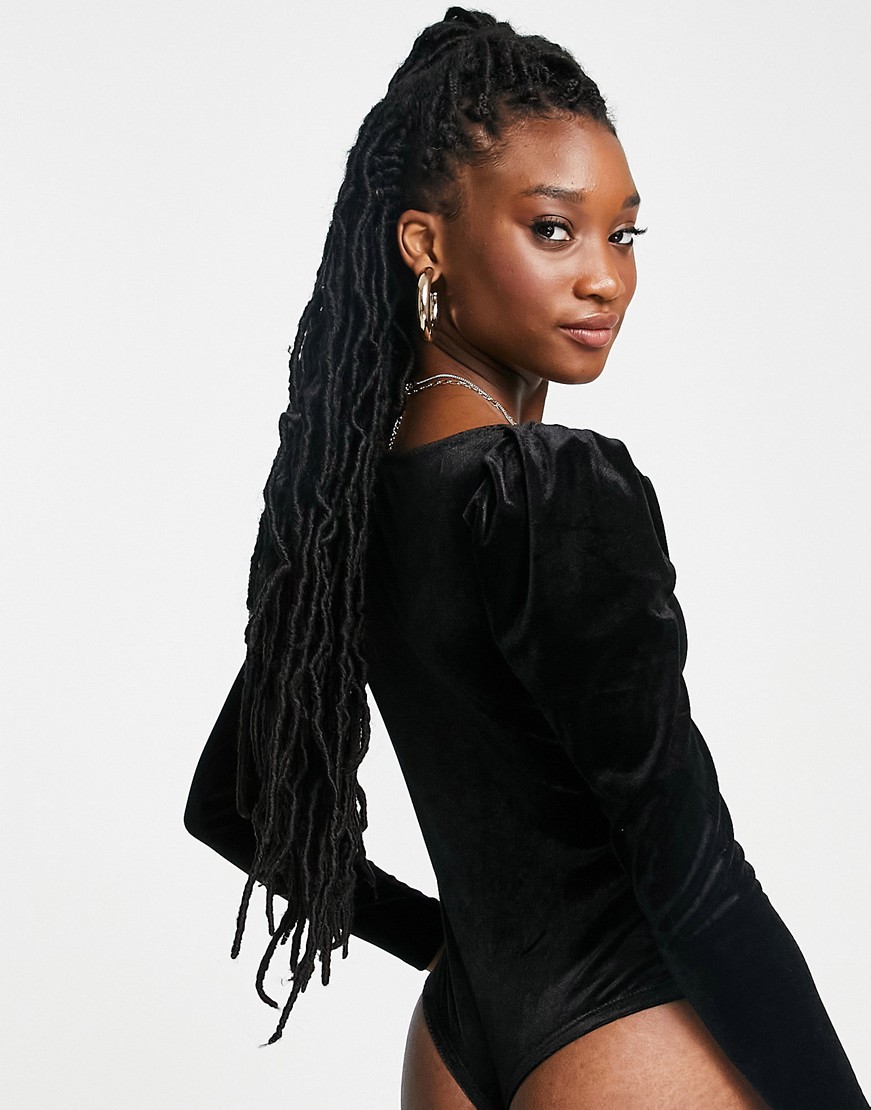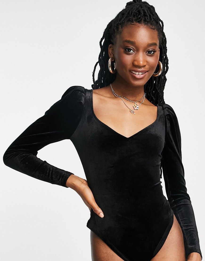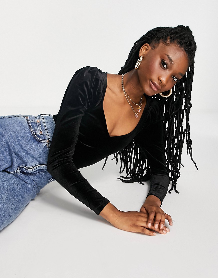 Miss Selfridge czarne welurowe body z długim rękawem 38