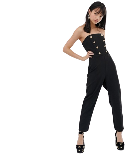 Miss Selfridge czarny Kombinezon złote guziki defekt 42