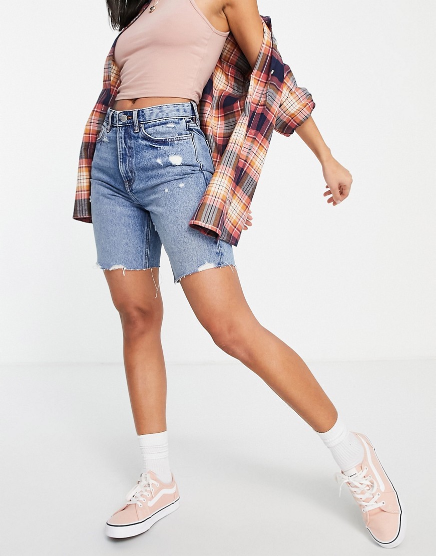 Miss Selfridge damskie niebieskie jeansowe szorty o wydłużonym fasonie S