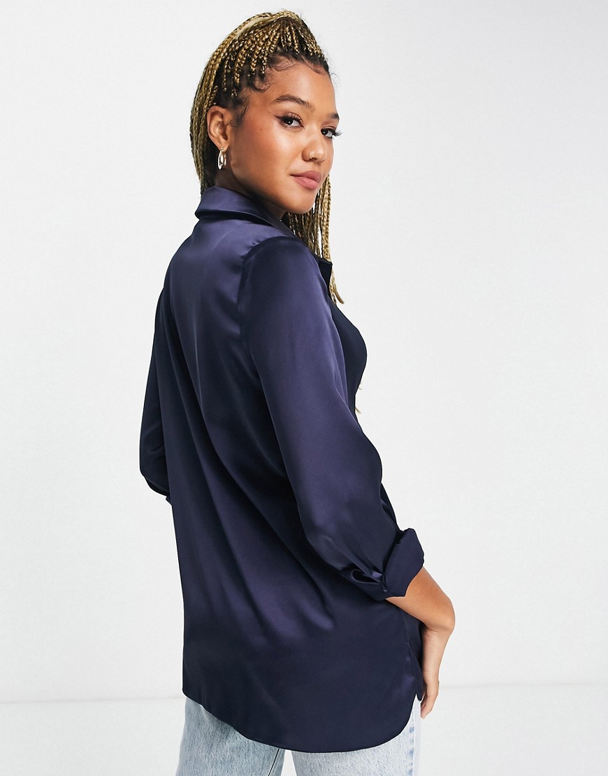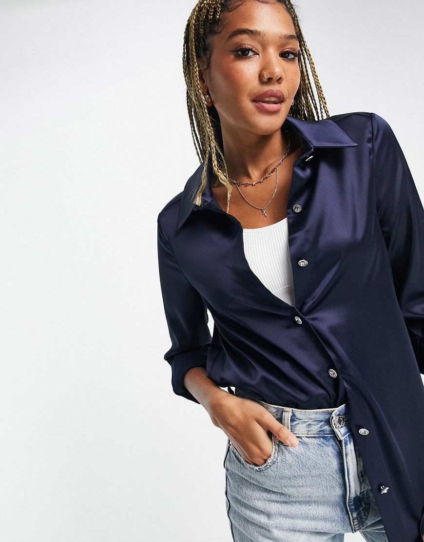 Miss Selfridge granatowa satynowa koszula guziki z kryształkami 44