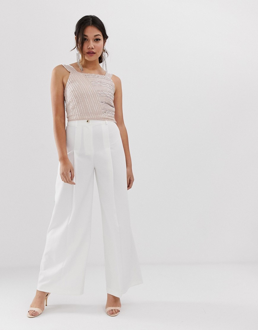 Miss Selfridge ivory kość słoniowa szerokie Spodnie XS 34