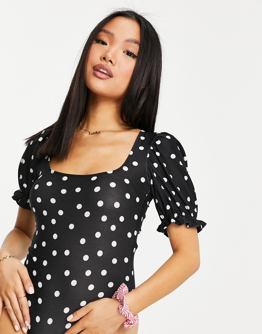 Miss Selfridge Petite body w groszki z kwadratowym dekoltem czarne defekt 38
