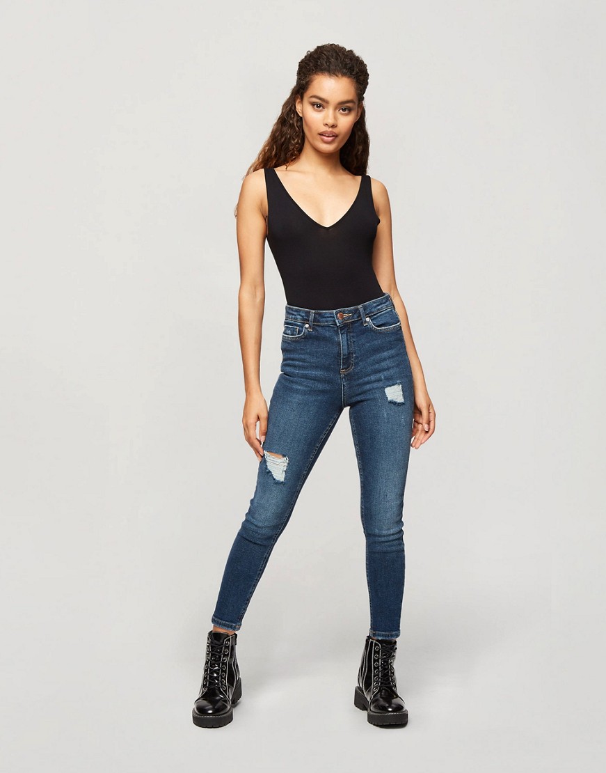 Miss Selfridge Petite czarne body z dekoltem w kształcie litery V basic 32